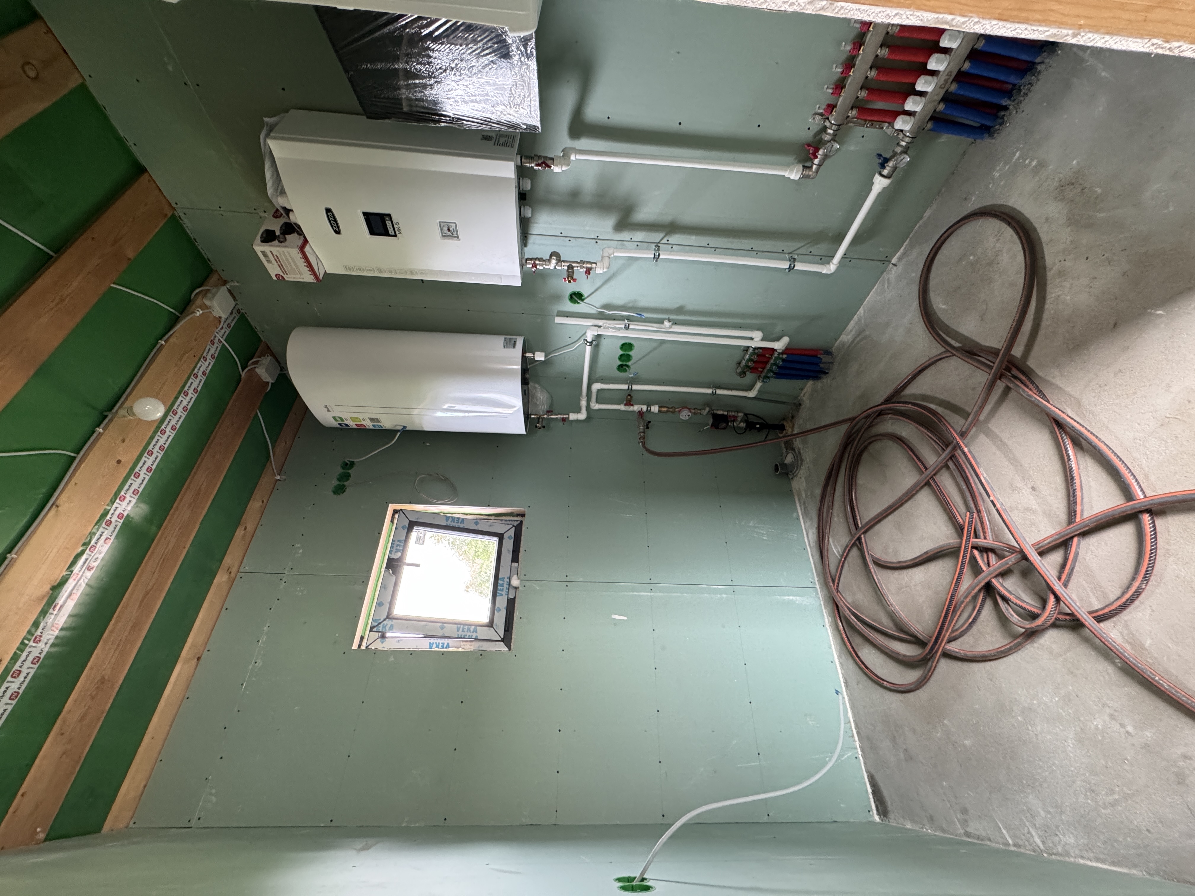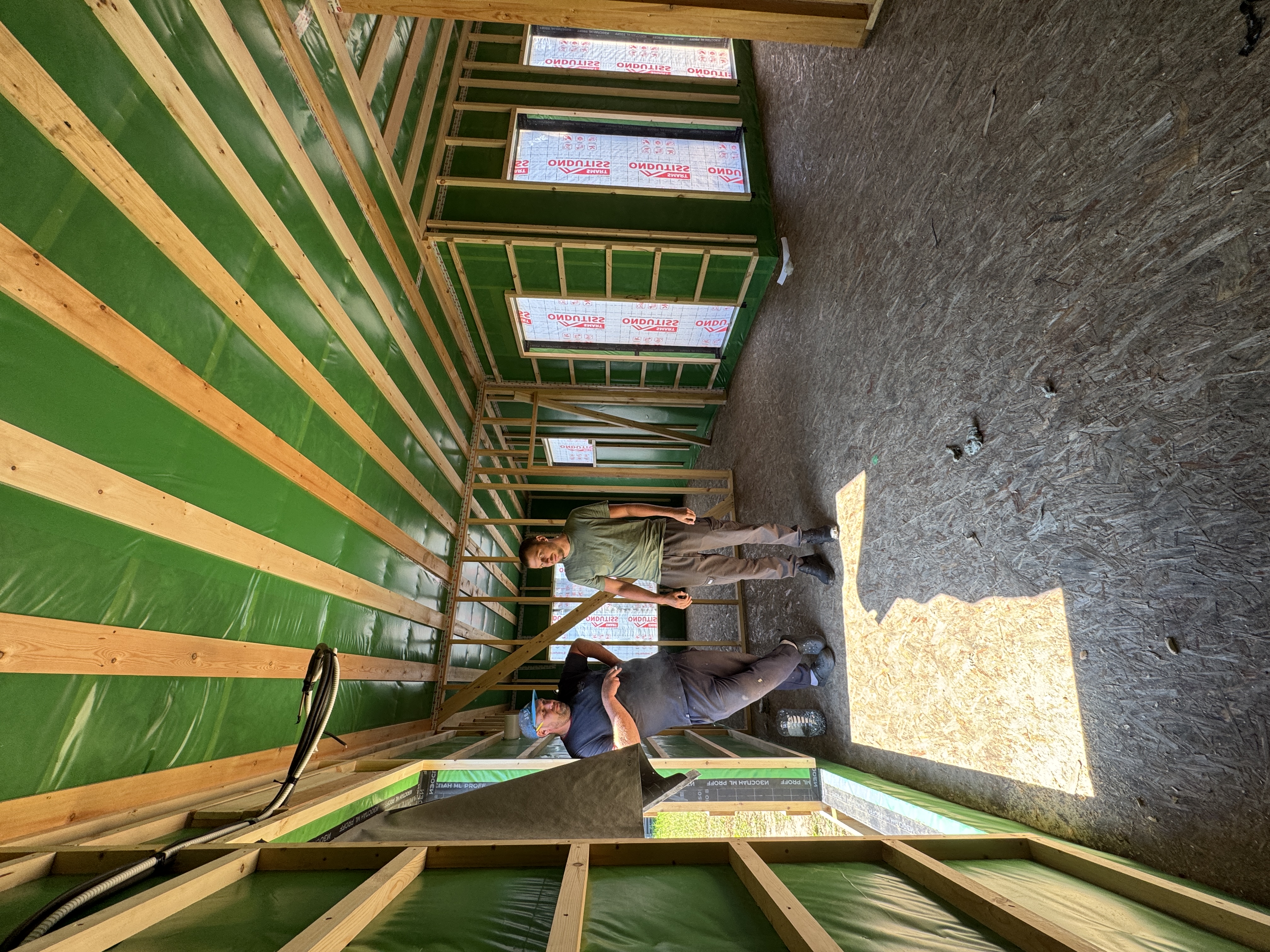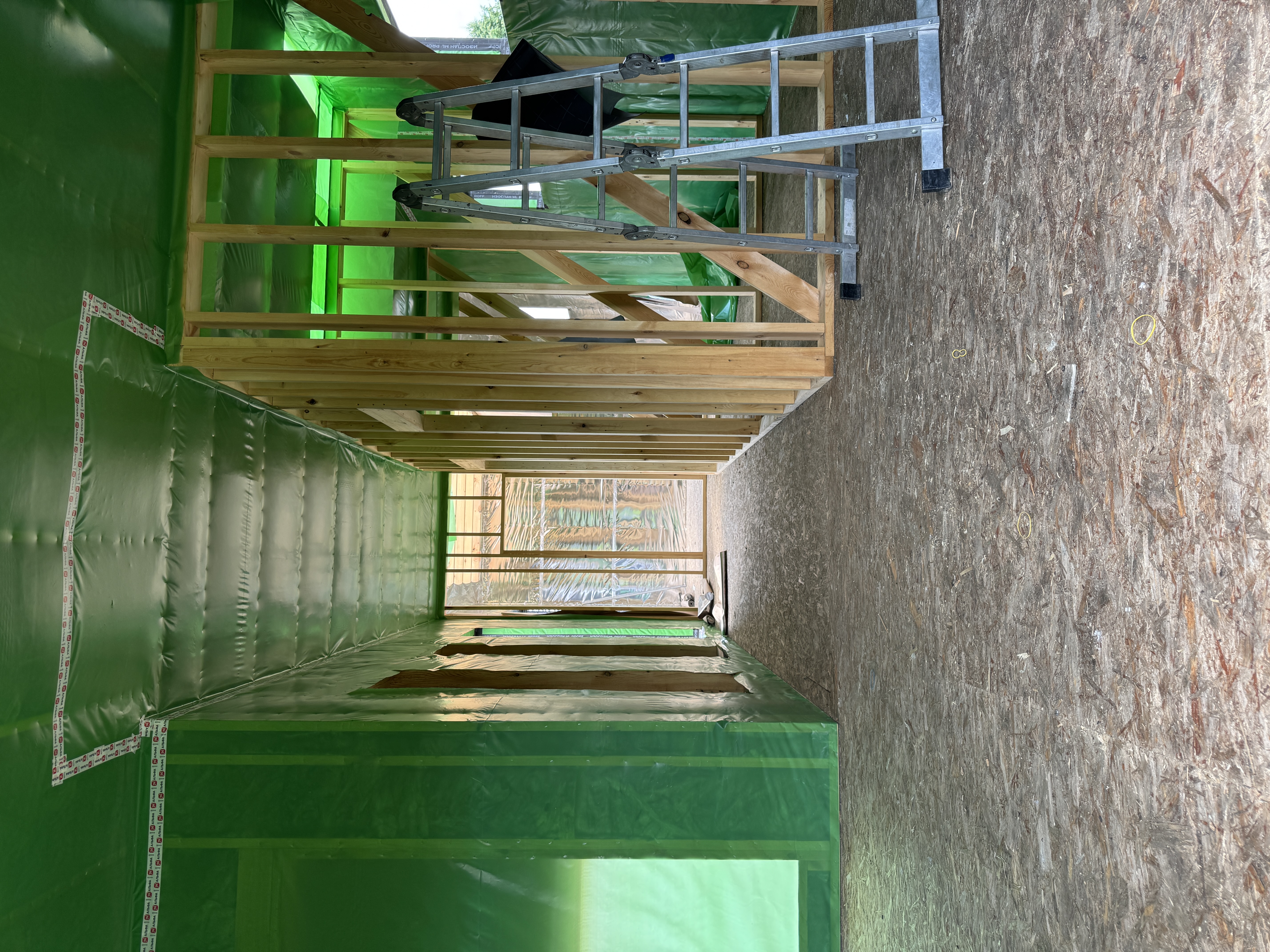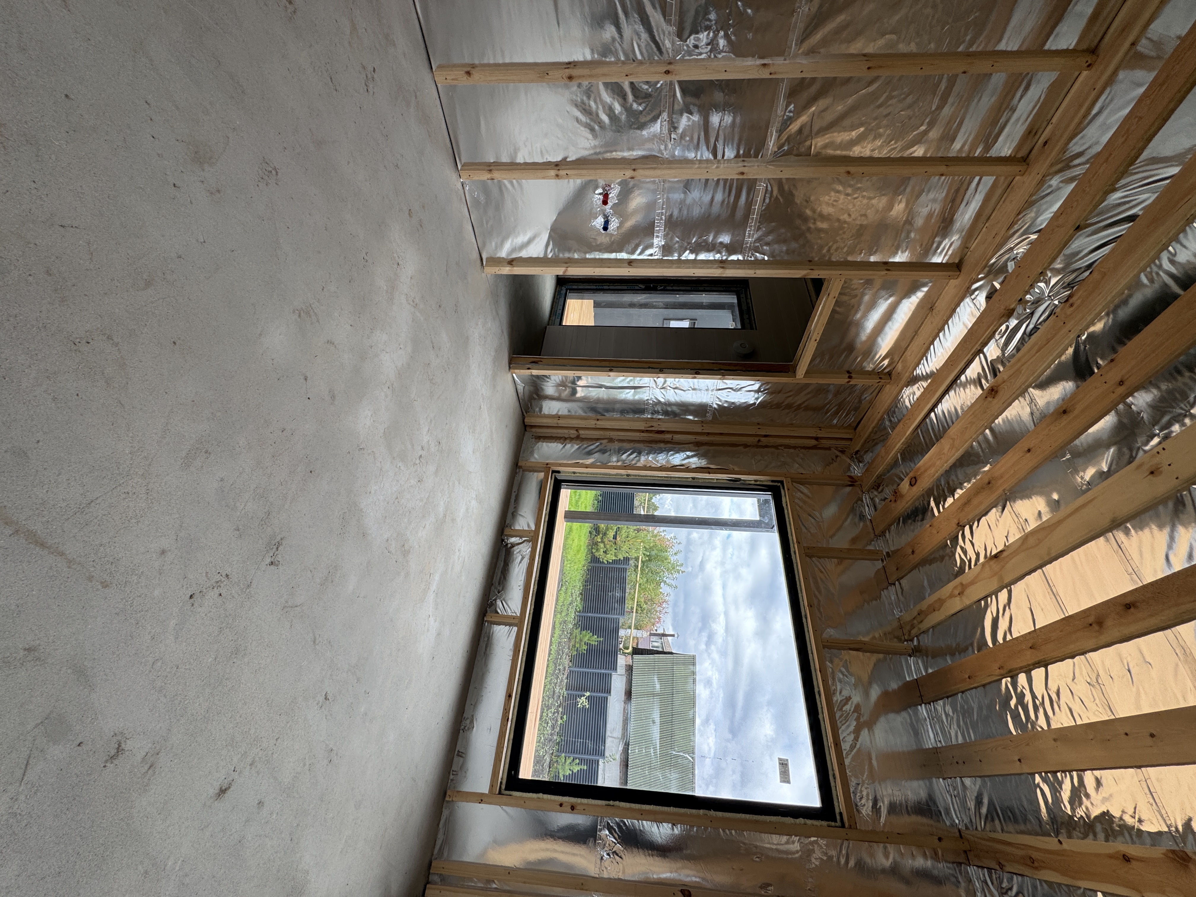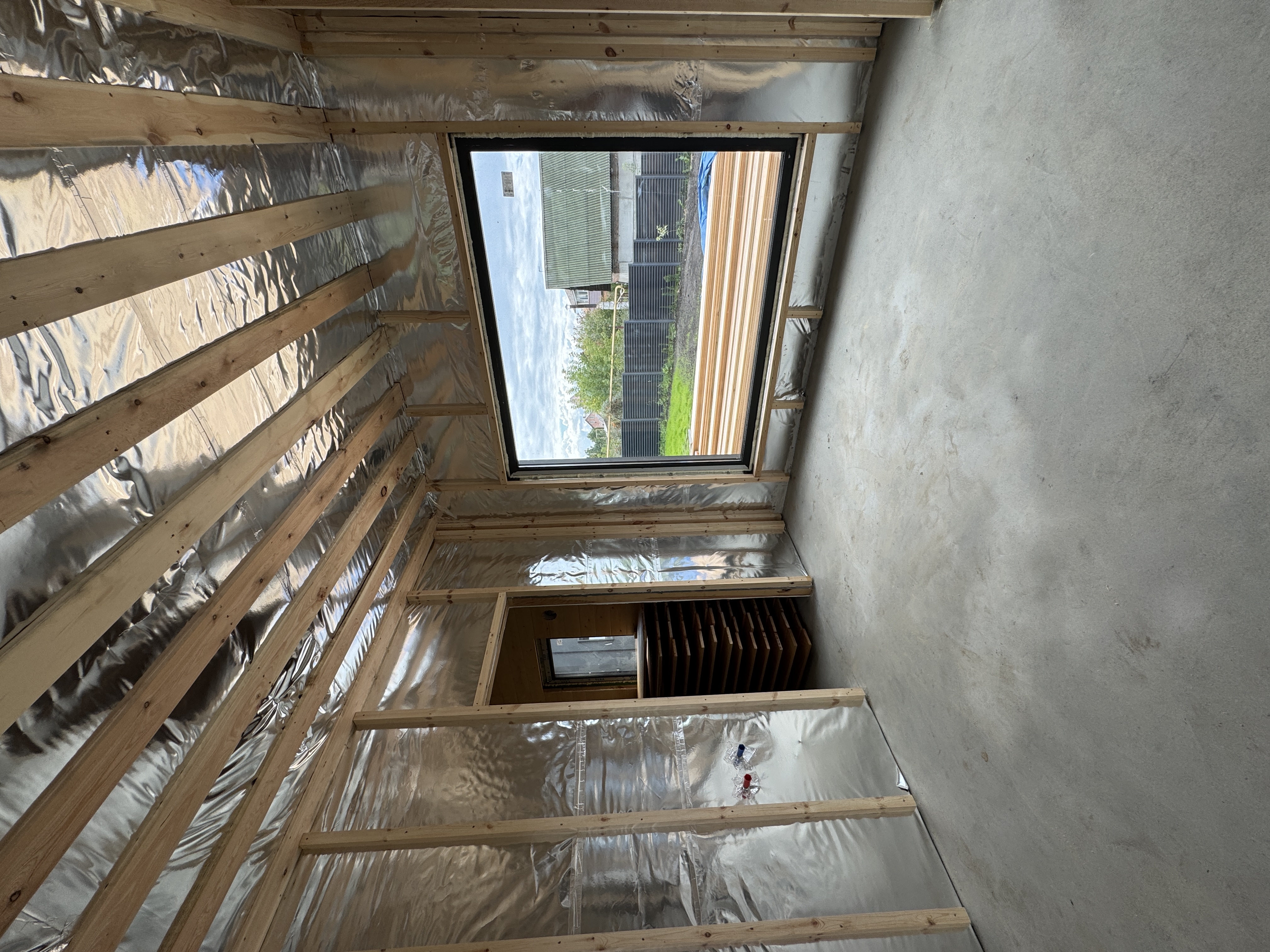 Каркасная дом-баня по нашему типовому проекту находящийся в п. Кирово. Фундамент винтовые сваи. Толщина теплоизоляции стен 150 мм , кровли 200 мм , фасад комбинированный из кликфальца и дерева, кровля фальцевая, внутренняя отделка ГКЛ/вагонка штиль.