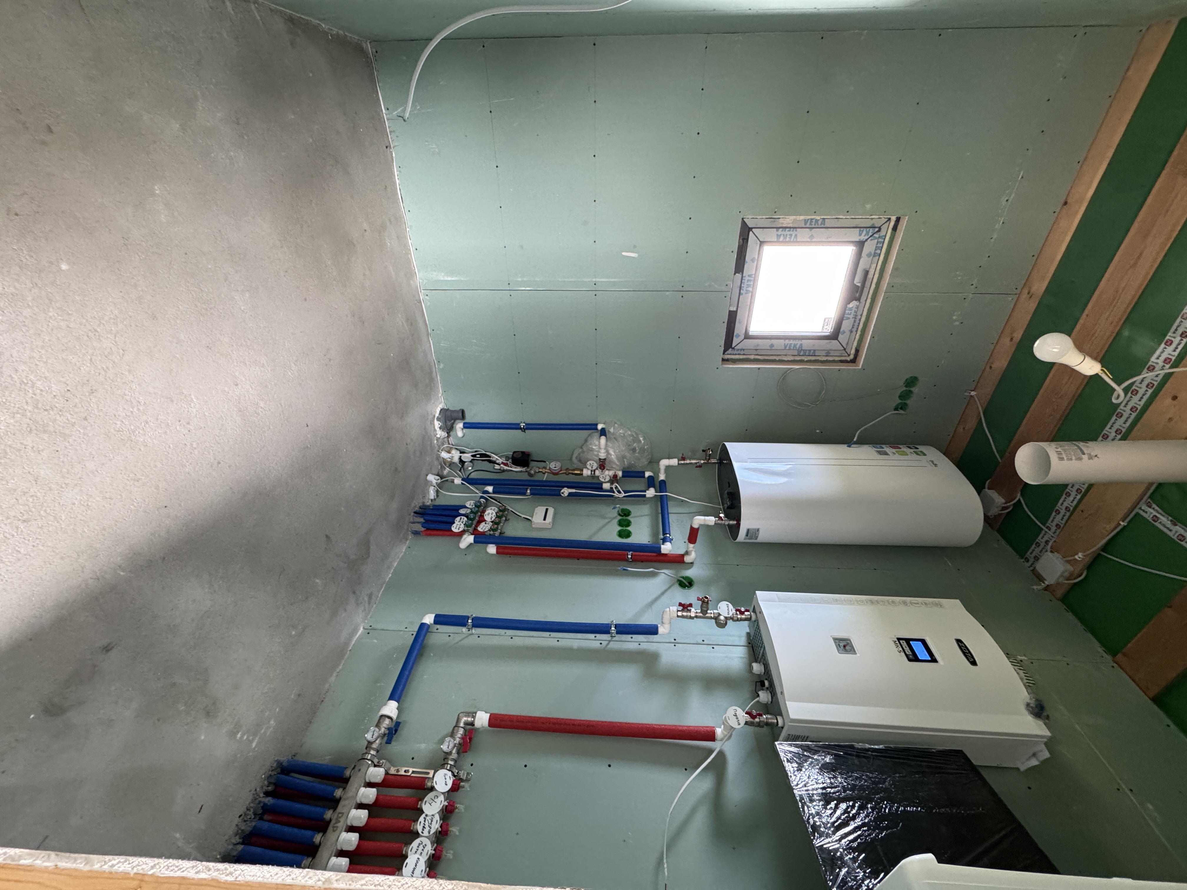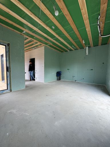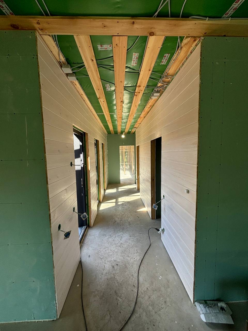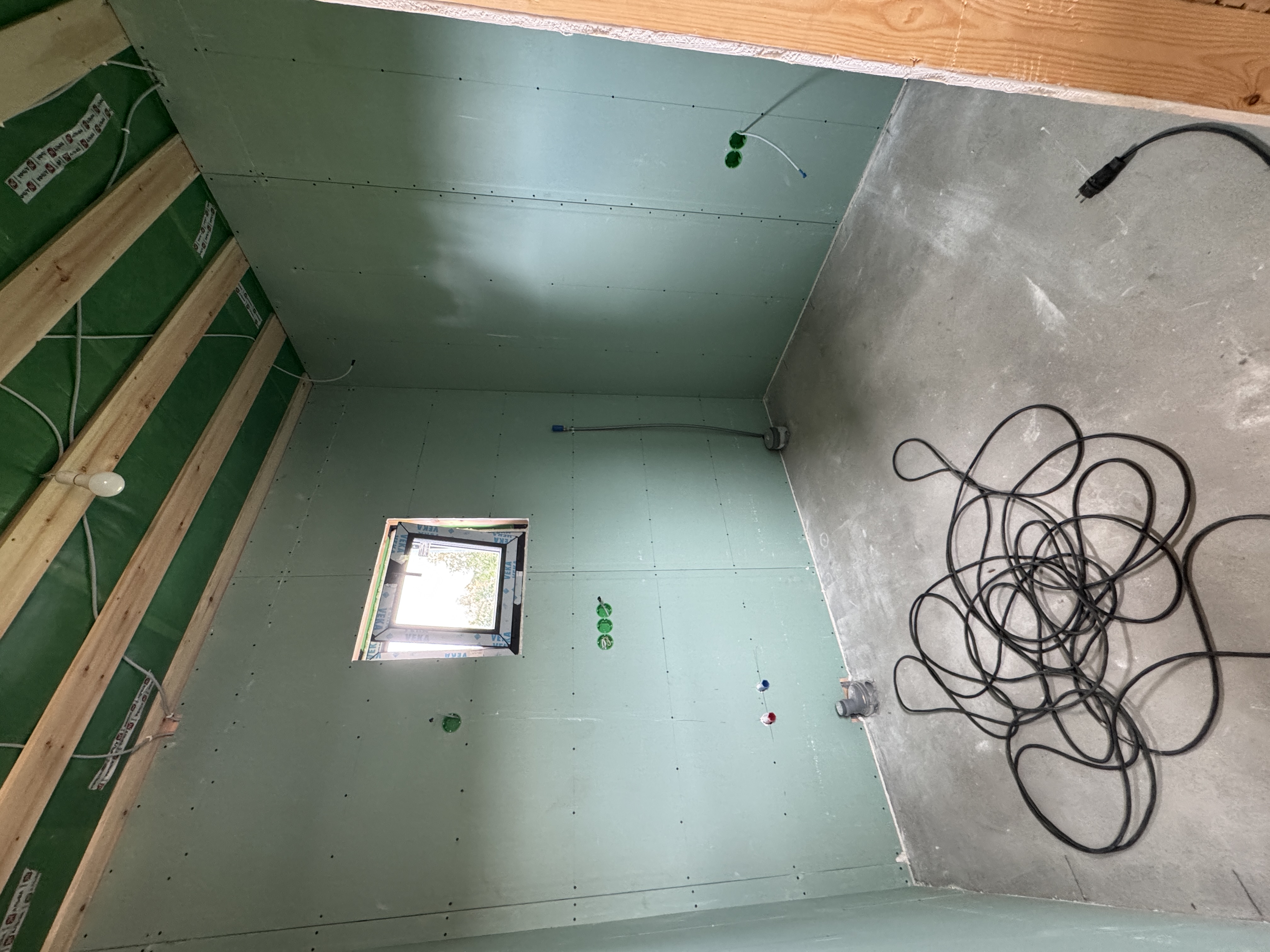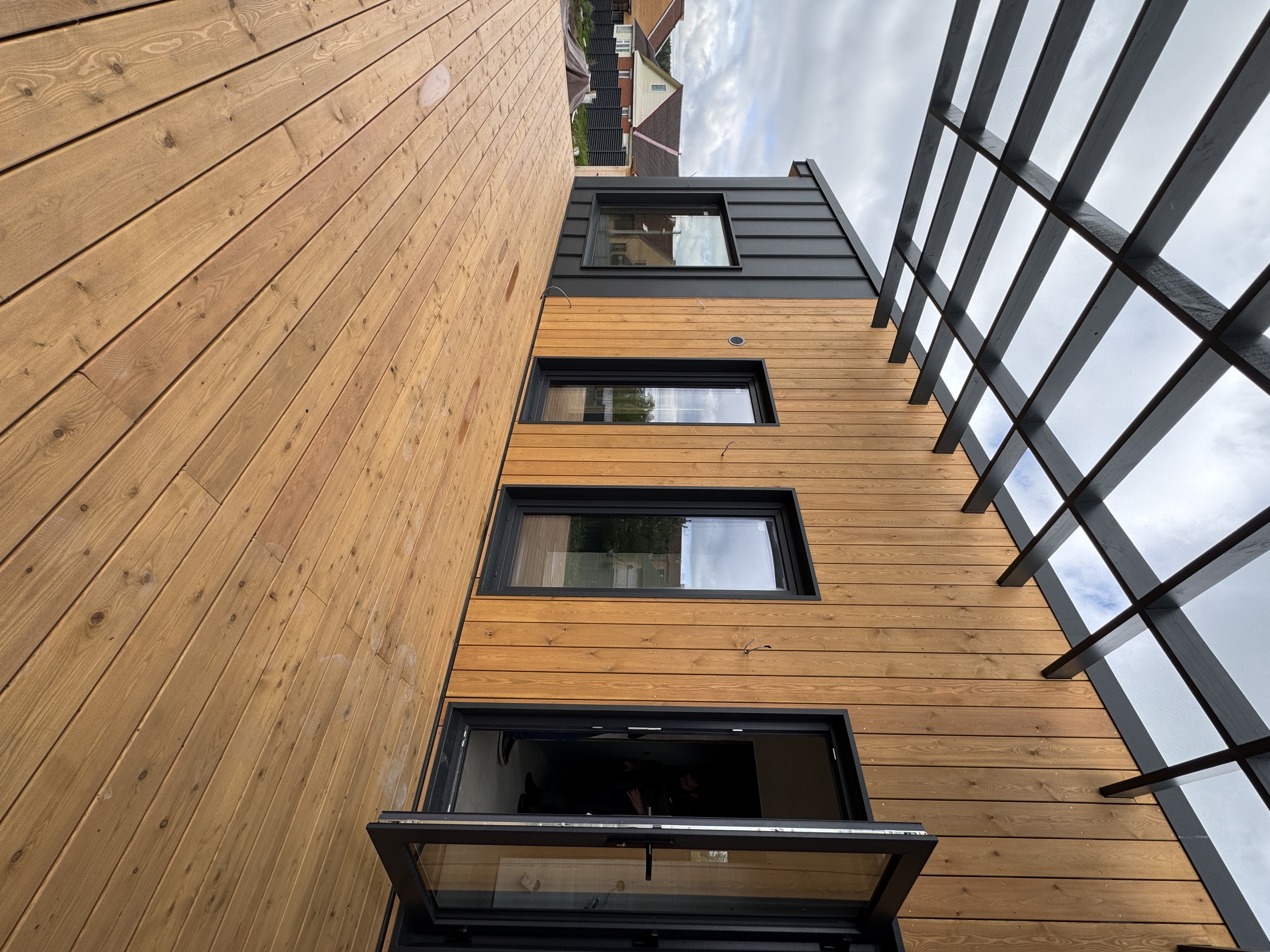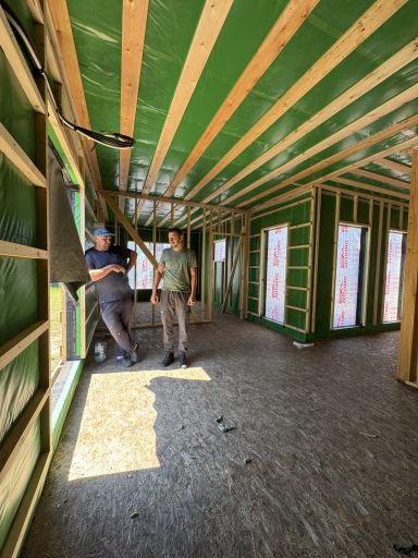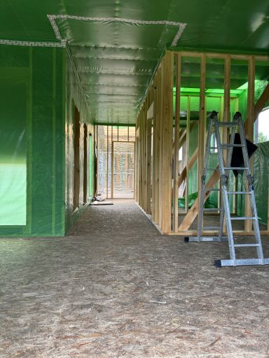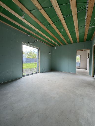 Каркасная дом-баня по нашему типовому проекту находящийся в п. Кирово. Фундамент винтовые сваи. Толщина теплоизоляции стен 150 мм , кровли 200 мм , фасад комбинированный из кликфальца и дерева, кровля фальцевая, внутренняя отделка ГКЛ/вагонка штиль.