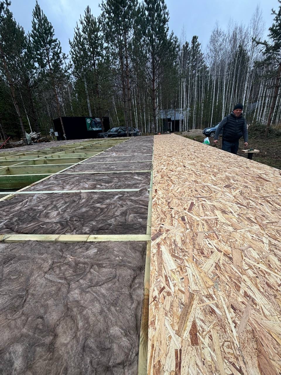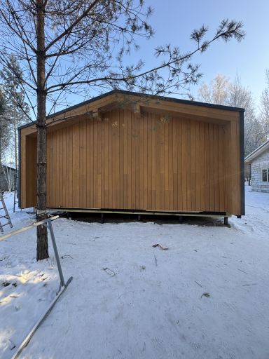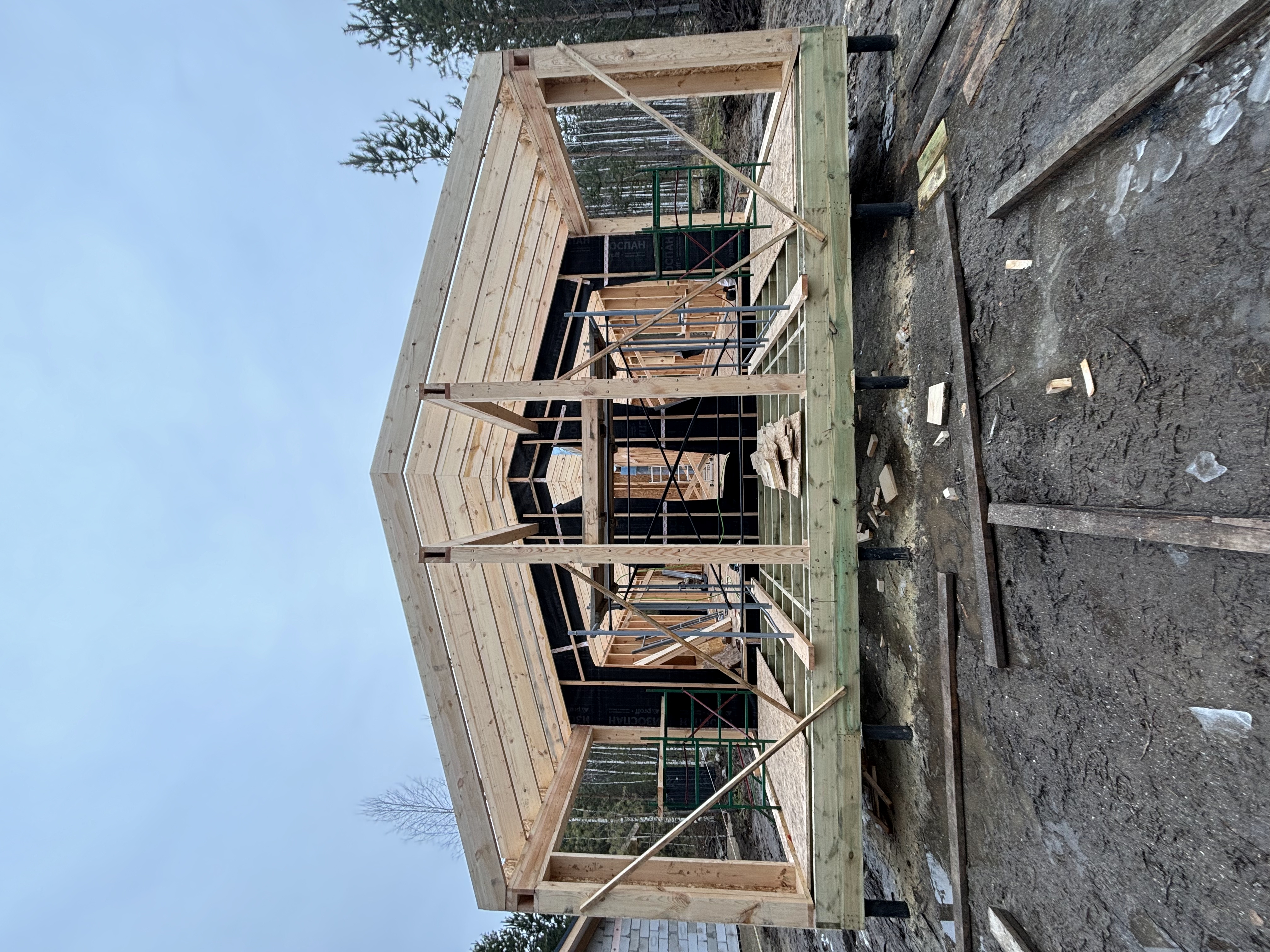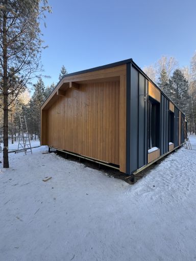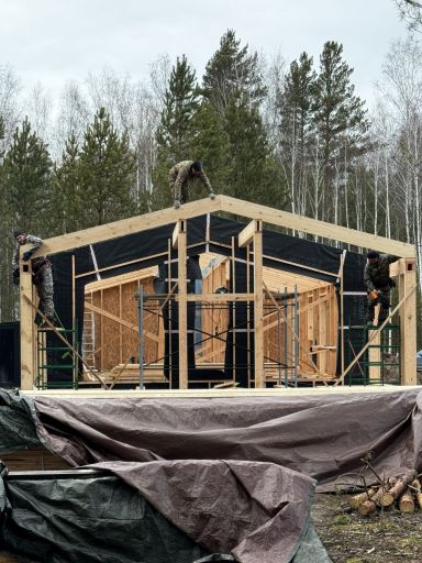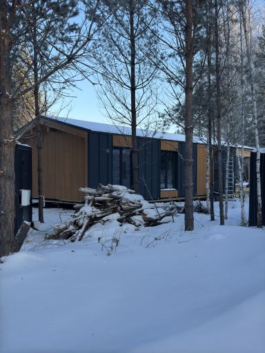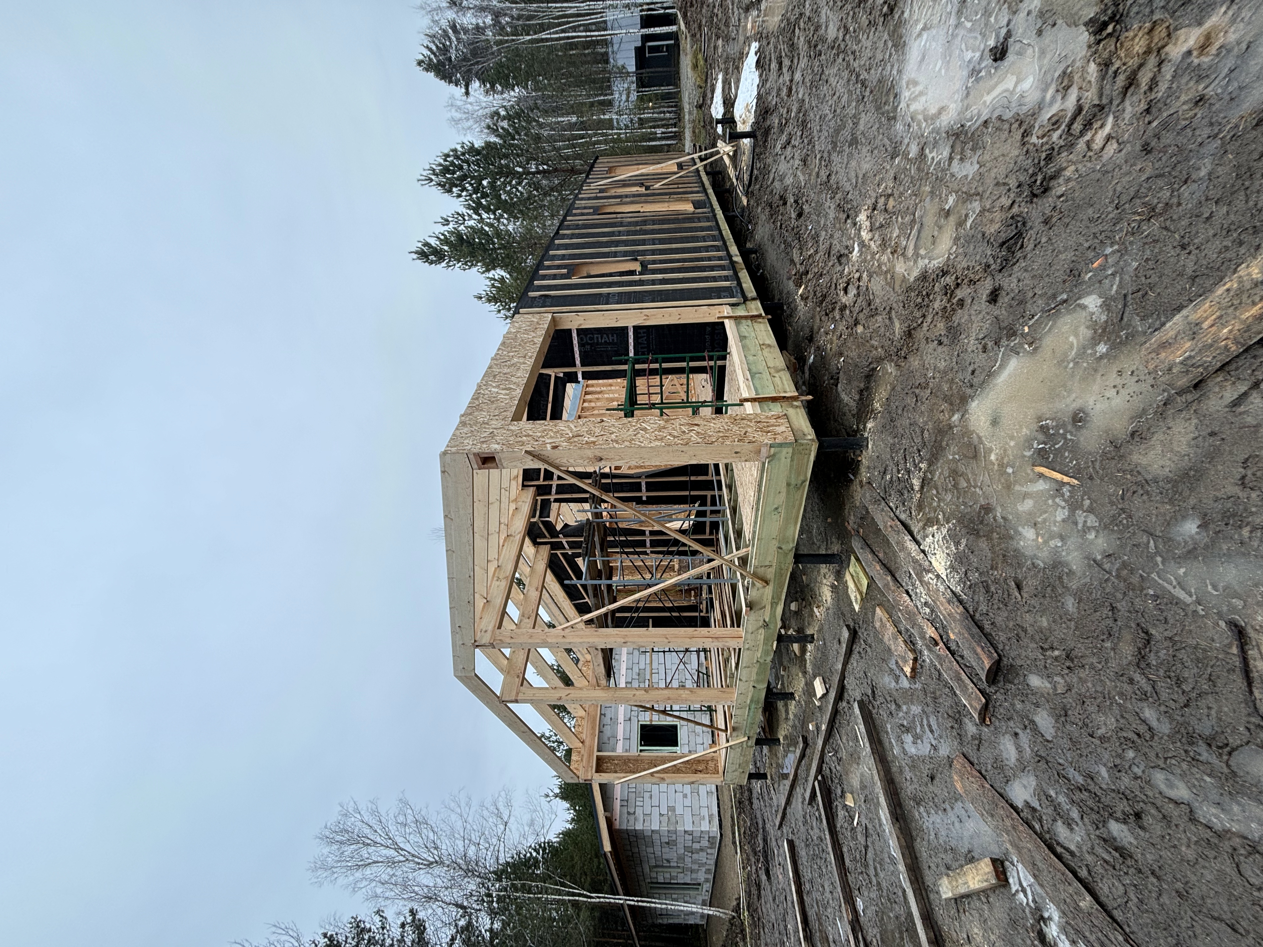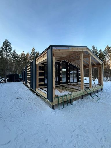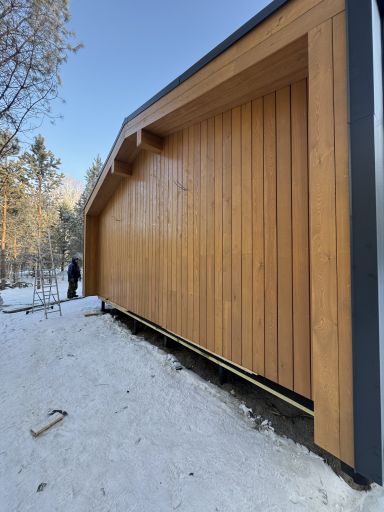 Каркасный дом по нашему типовому проекту находящийся в п. Степной, мрн. Калиновый. Фундамент винтовые сваи. Толщина теплоизоляции стен 200 мм , кровли 300 мм , фасад комбинированный из кликфальца и дерева, кровля фальцовая, внутренняя отделка ГКЛ/вагонка штиль.