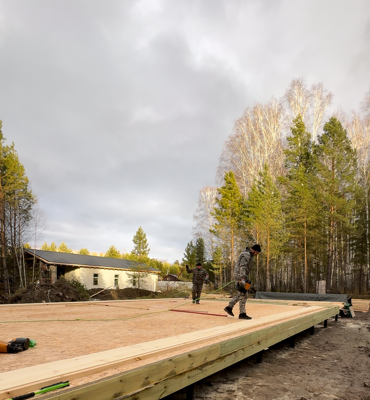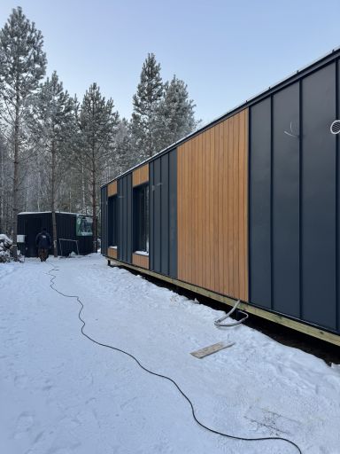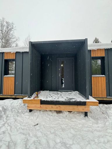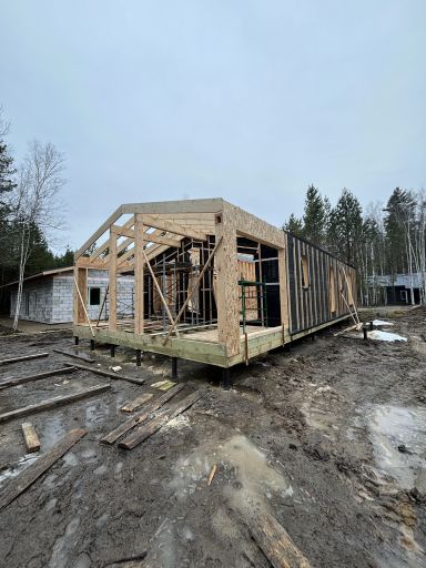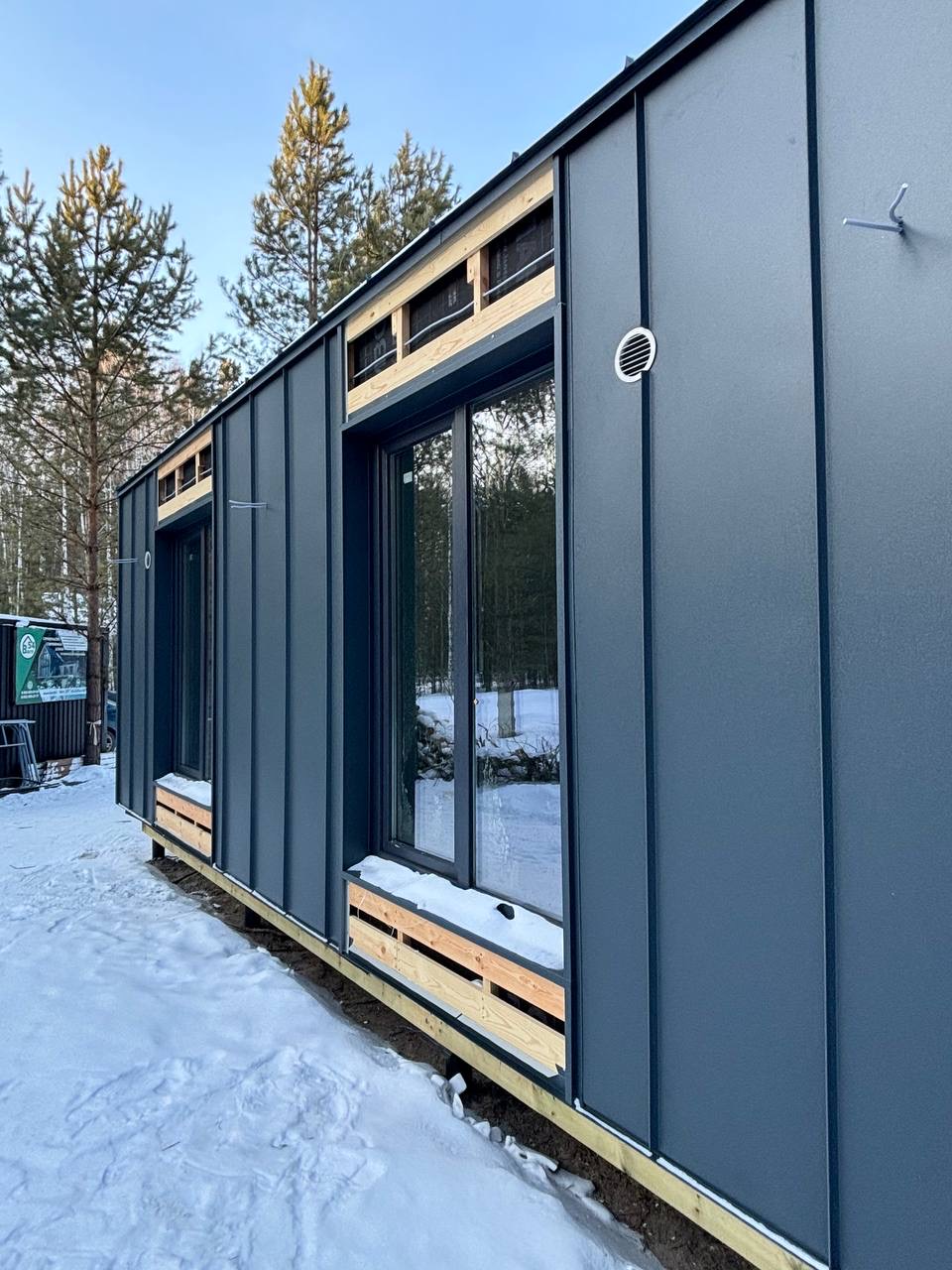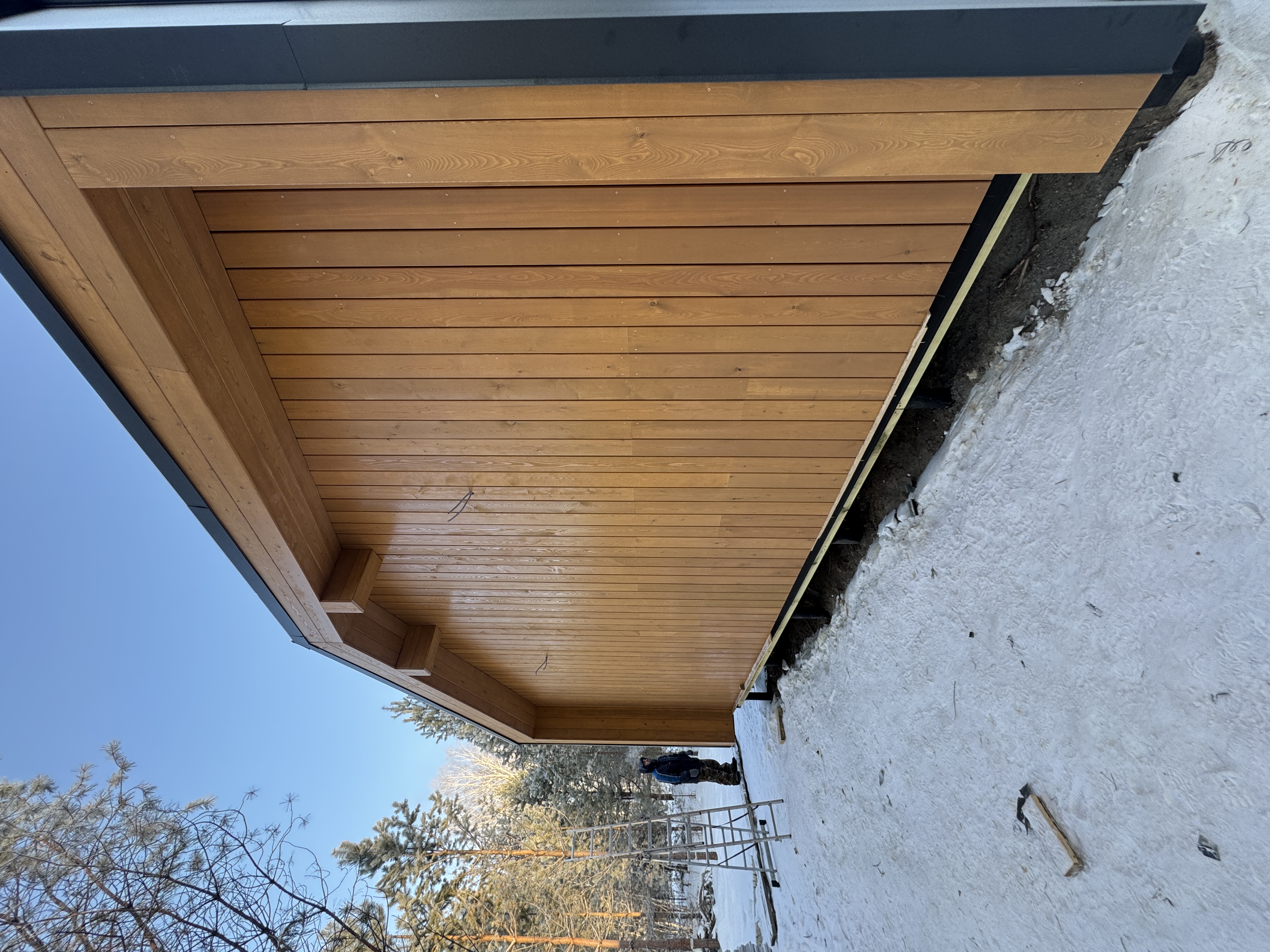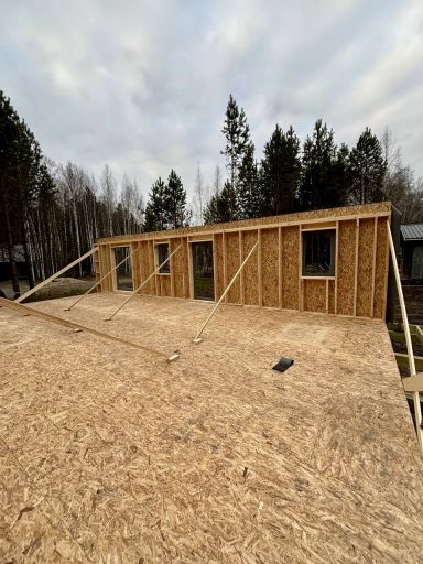Каркасный дом по нашему типовому проекту находящийся в п. Степной, мрн. Калиновый. Фундамент винтовые сваи. Толщина теплоизоляции стен 200 мм , кровли 300 мм , фасад комбинированный из кликфальца и дерева, кровля фальцовая, внутренняя отделка ГКЛ/вагонка штиль.