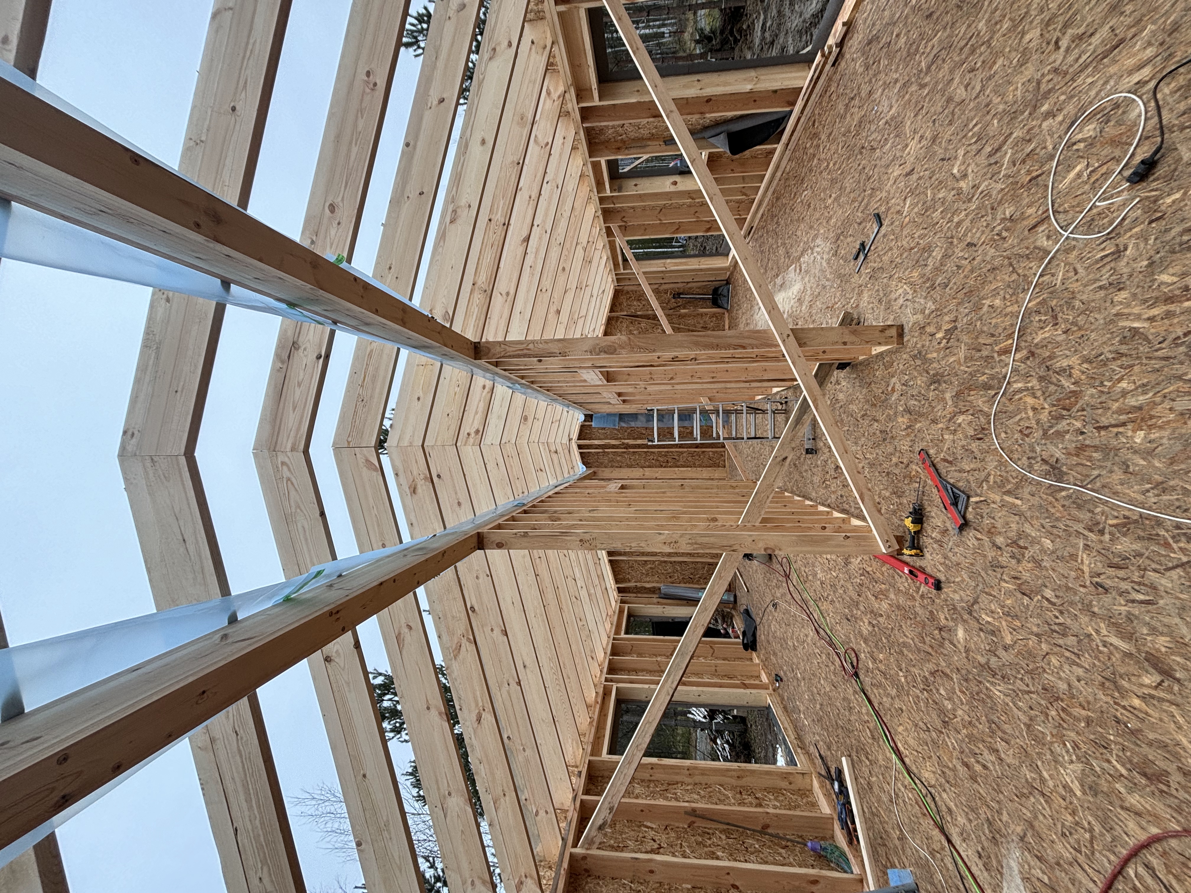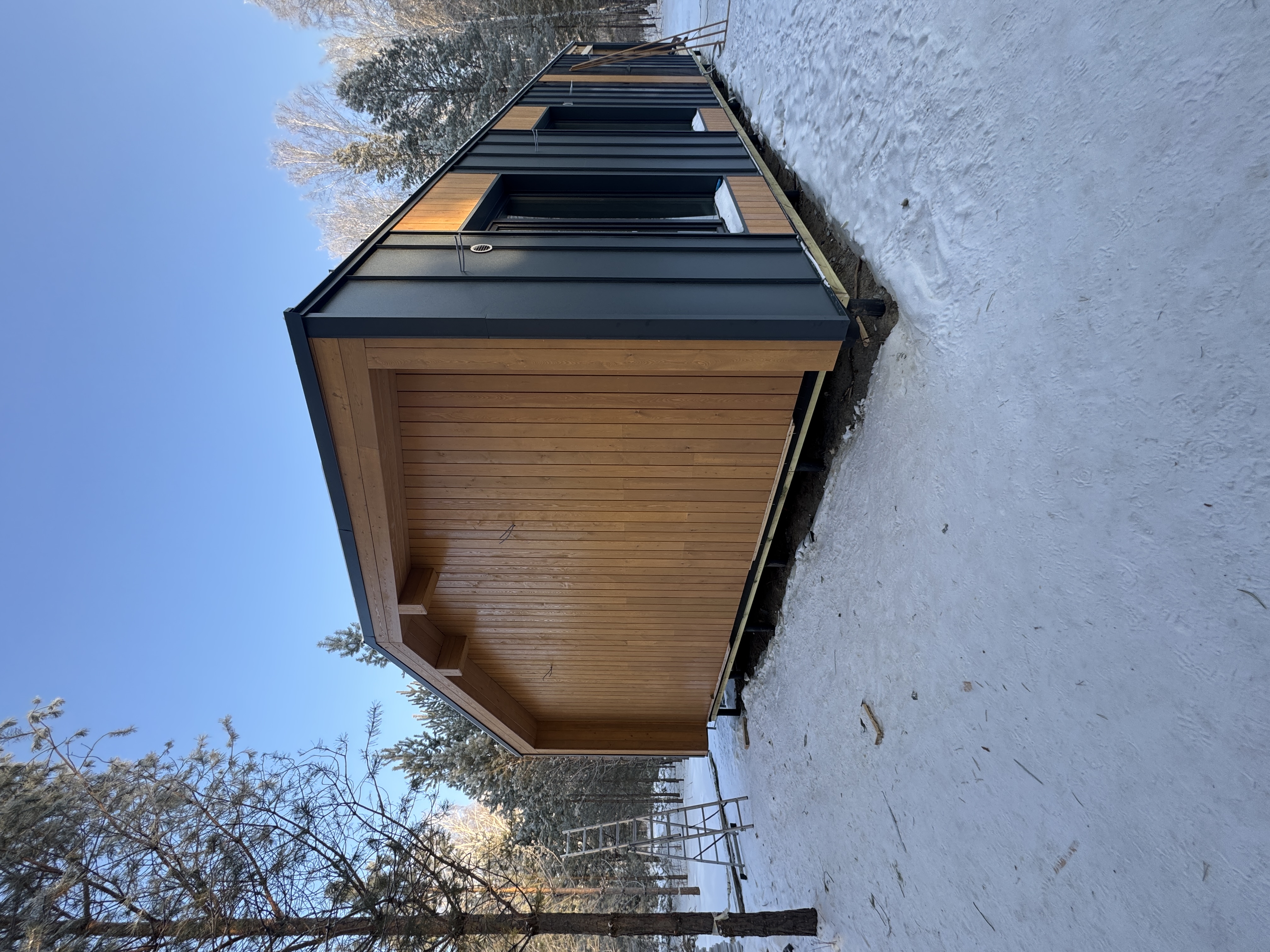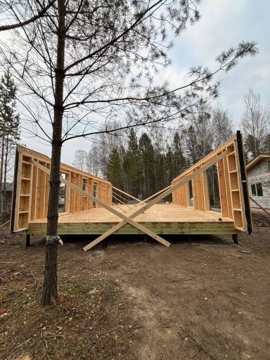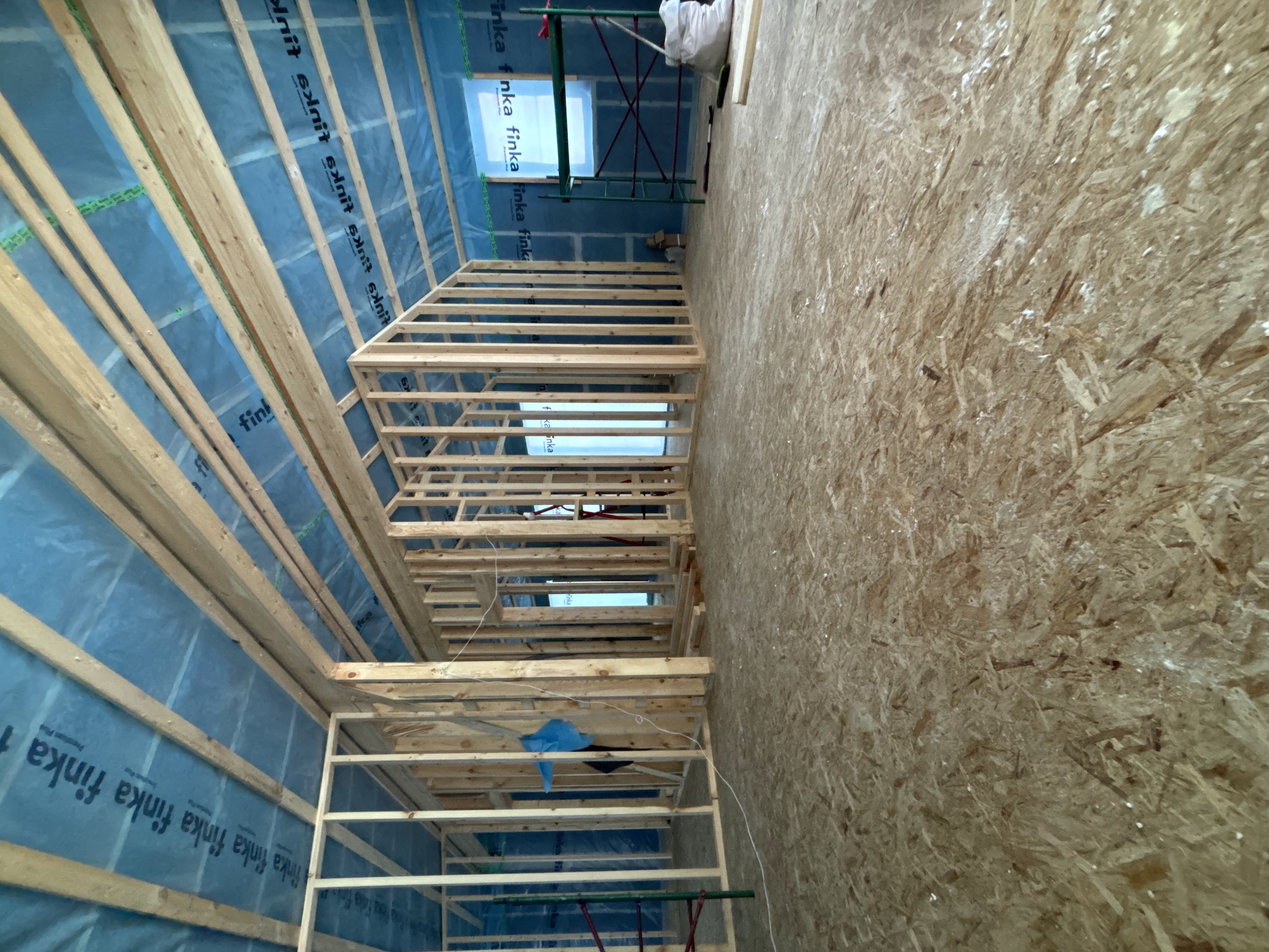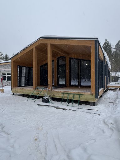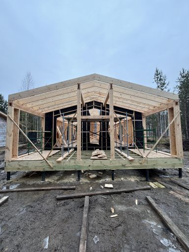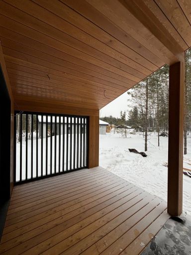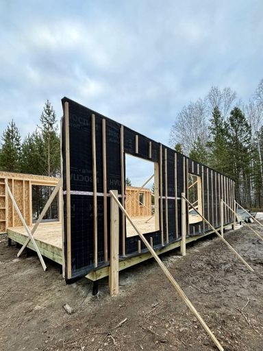 Каркасный дом по нашему типовому проекту находящийся в п. Степной, мрн. Калиновый. Фундамент винтовые сваи. Толщина теплоизоляции стен 200 мм , кровли 300 мм , фасад комбинированный из кликфальца и дерева, кровля фальцовая, внутренняя отделка ГКЛ/вагонка штиль.