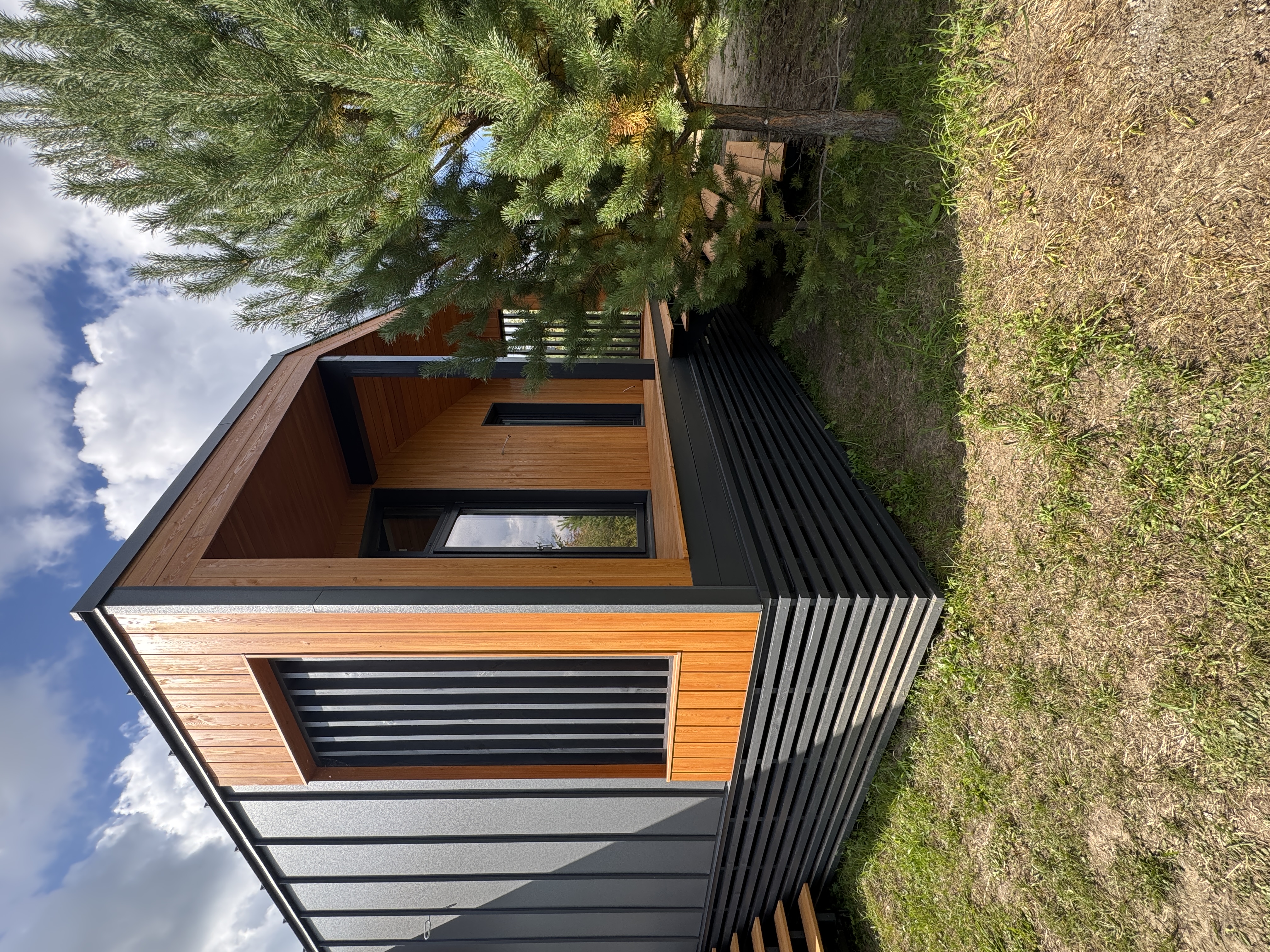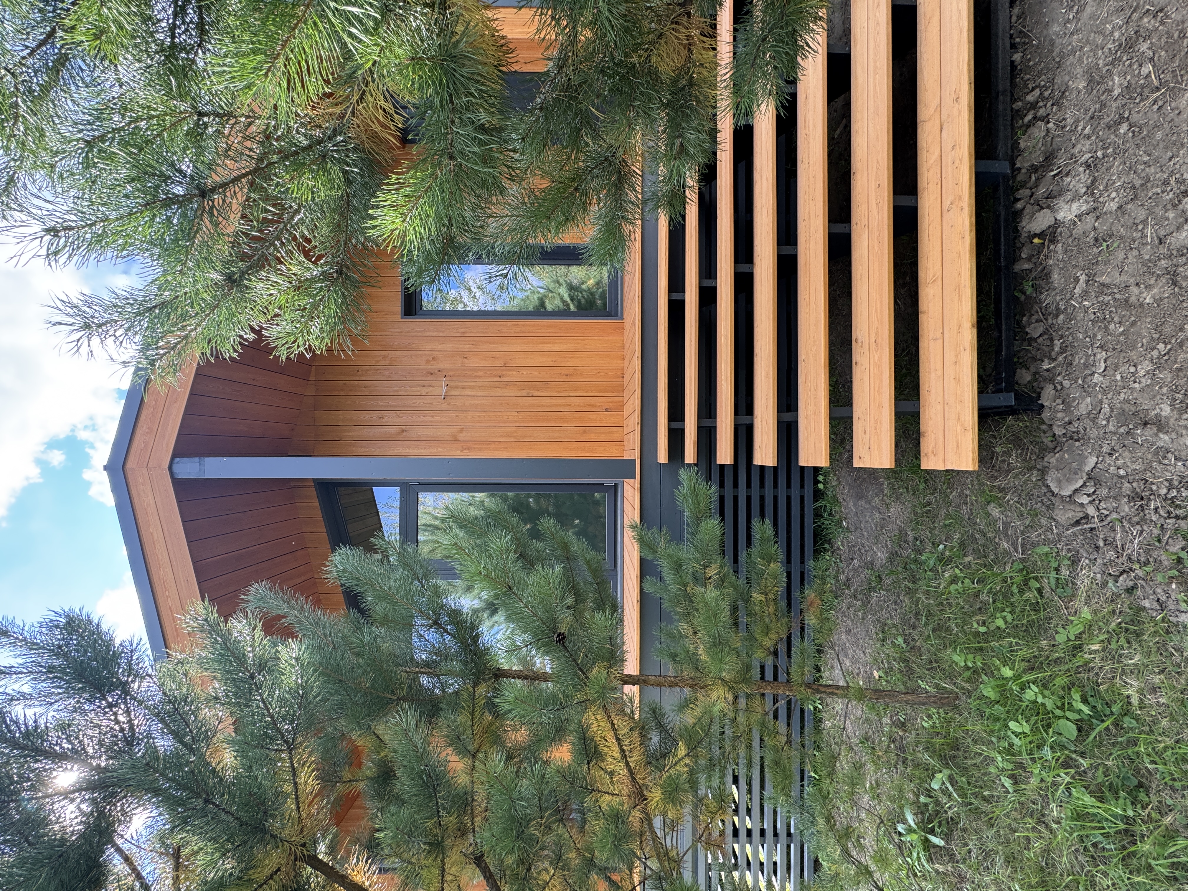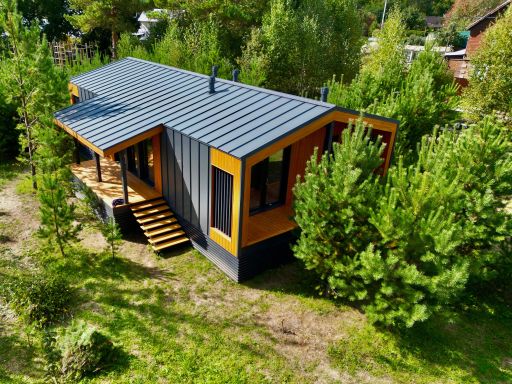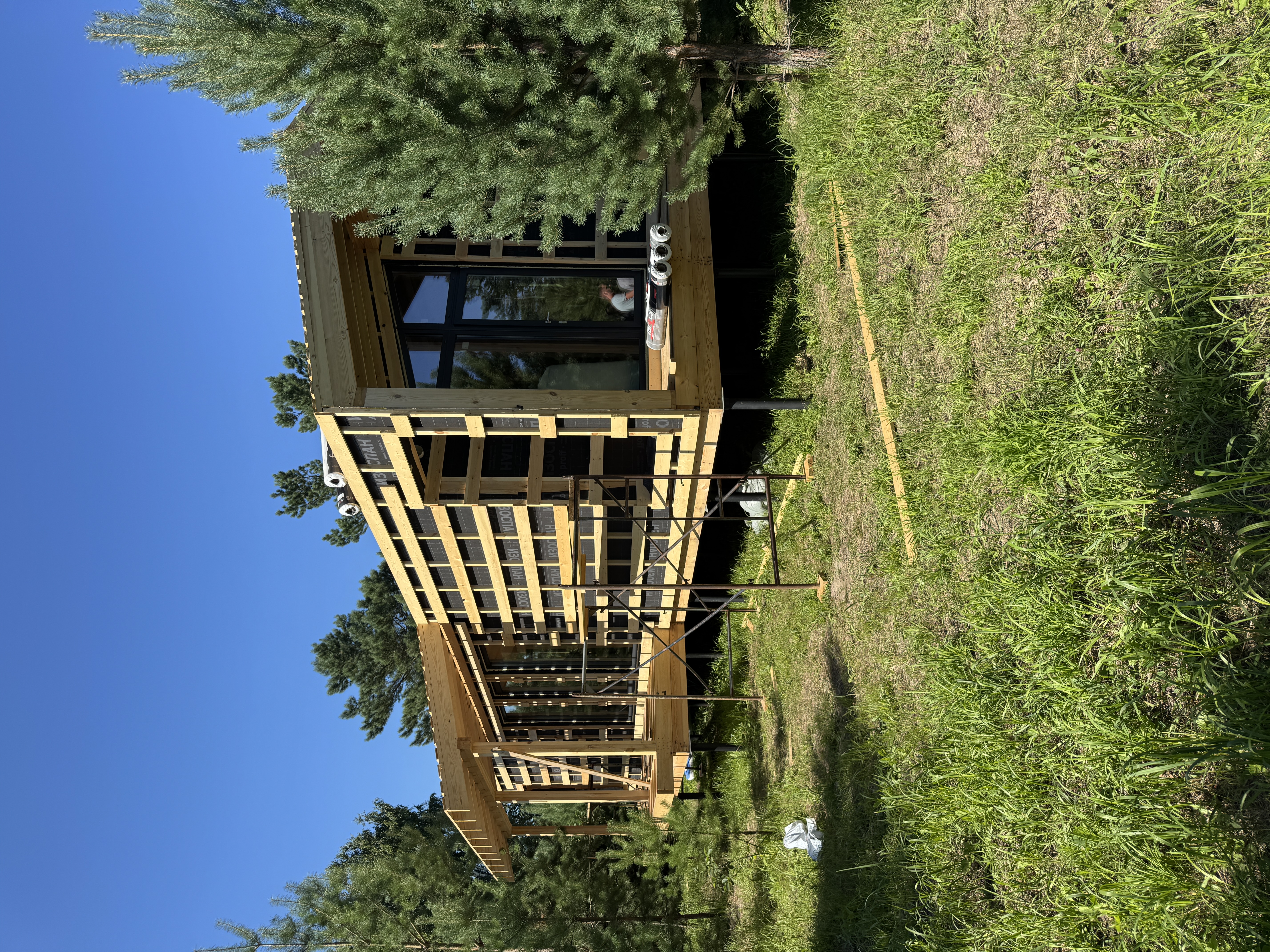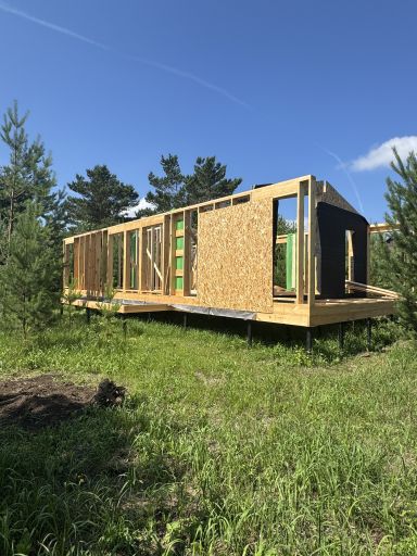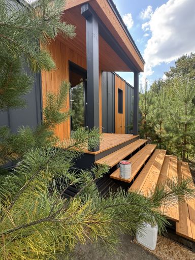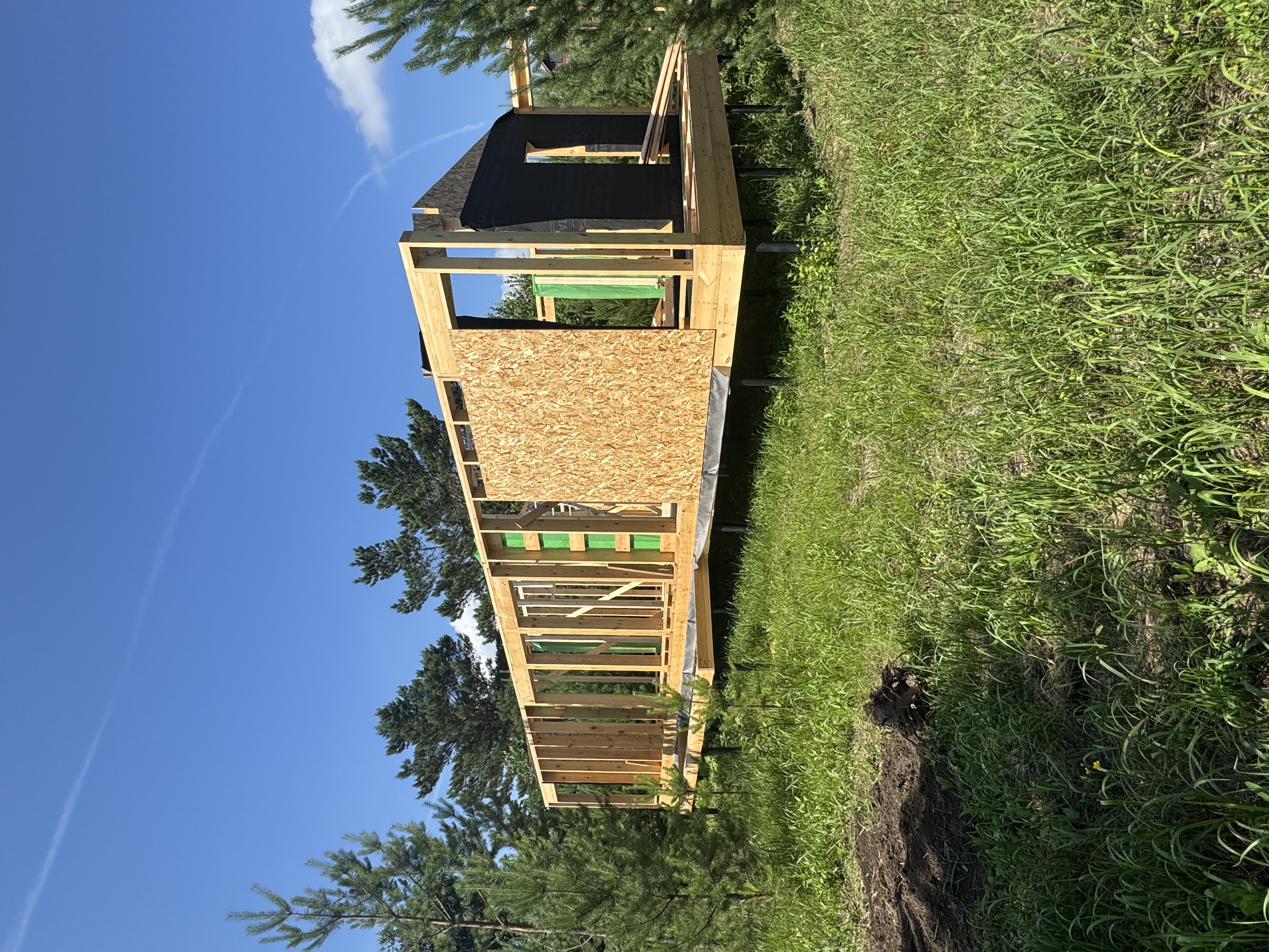 Каркасный дом по нашему типовому проекту находящийся в СНТ "Элеваторщик". Фундамент винтовые сваи. Толщина теплоизоляции стен 200 мм , кровли 300 мм , фасад комбинированный из кликфальца и дерева, кровля фальцевая, внутренняя отделка ГКЛ.