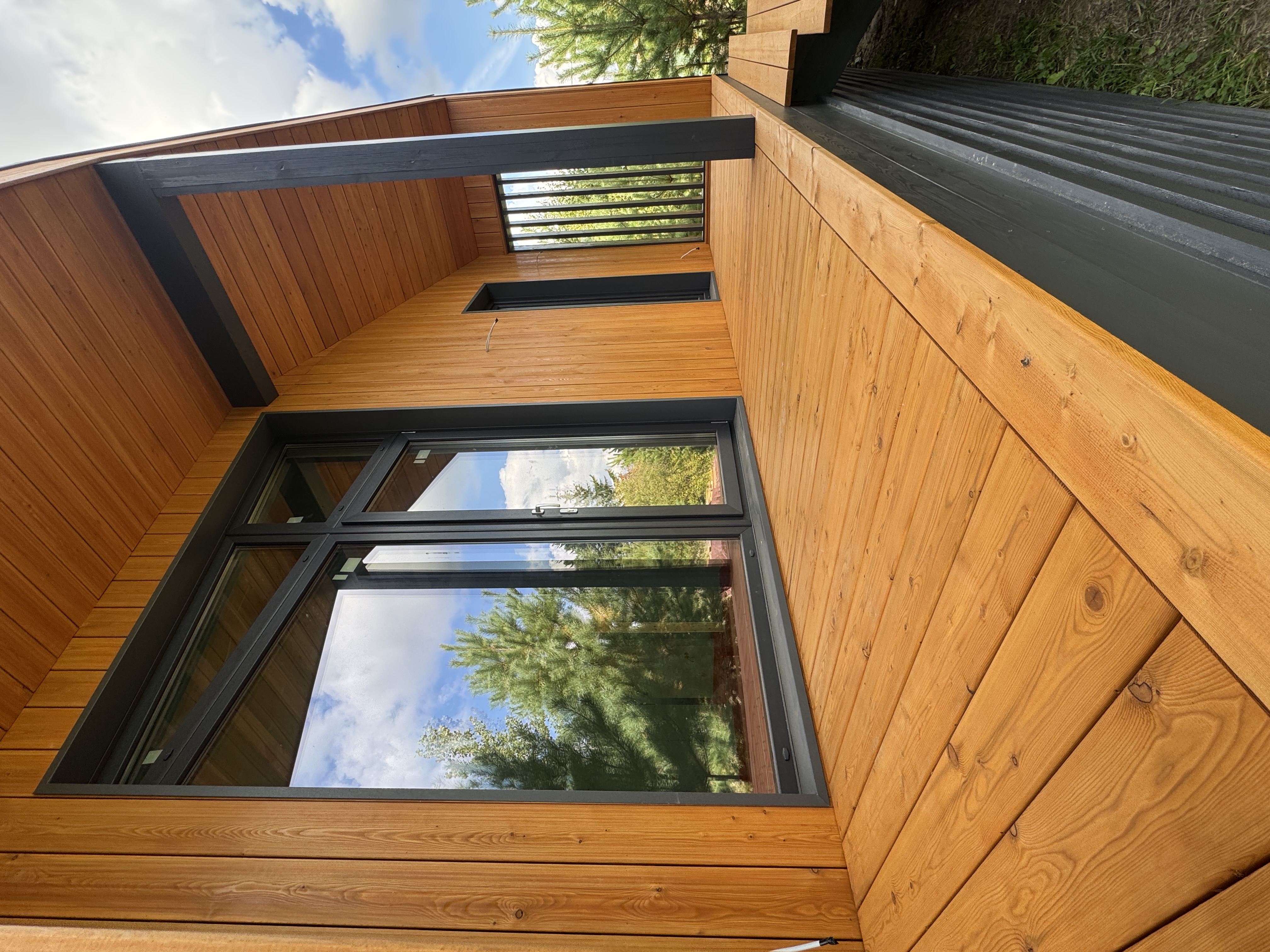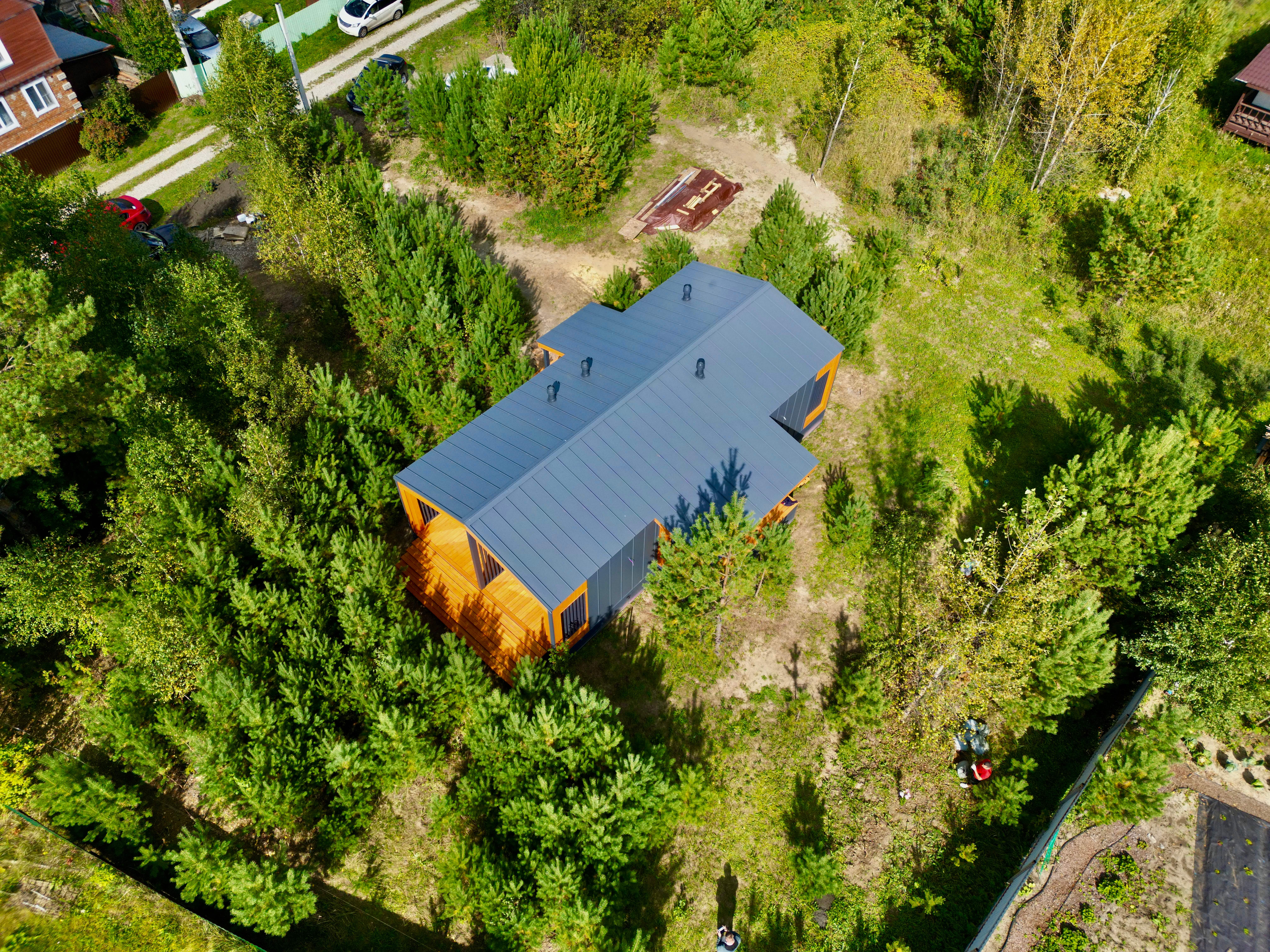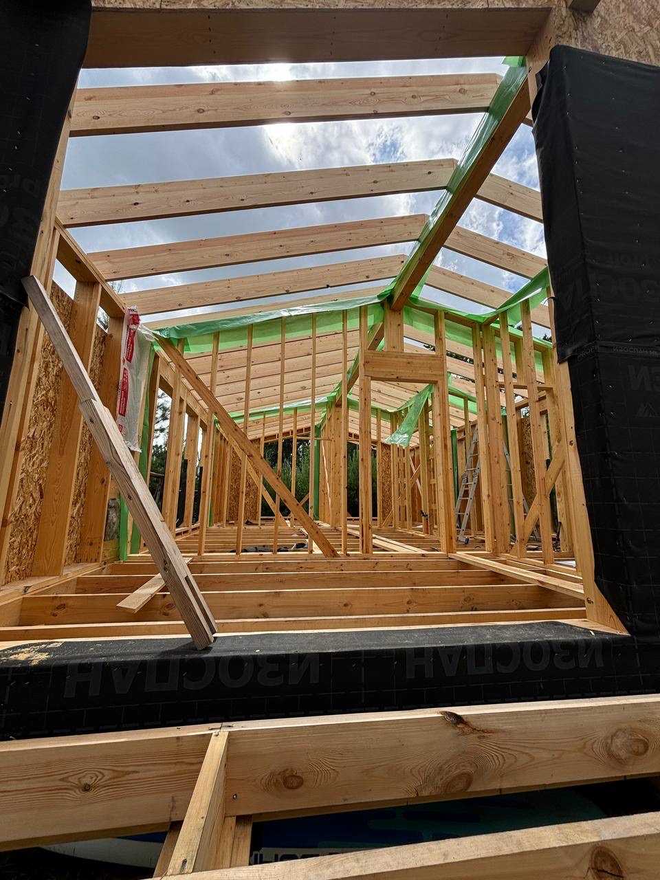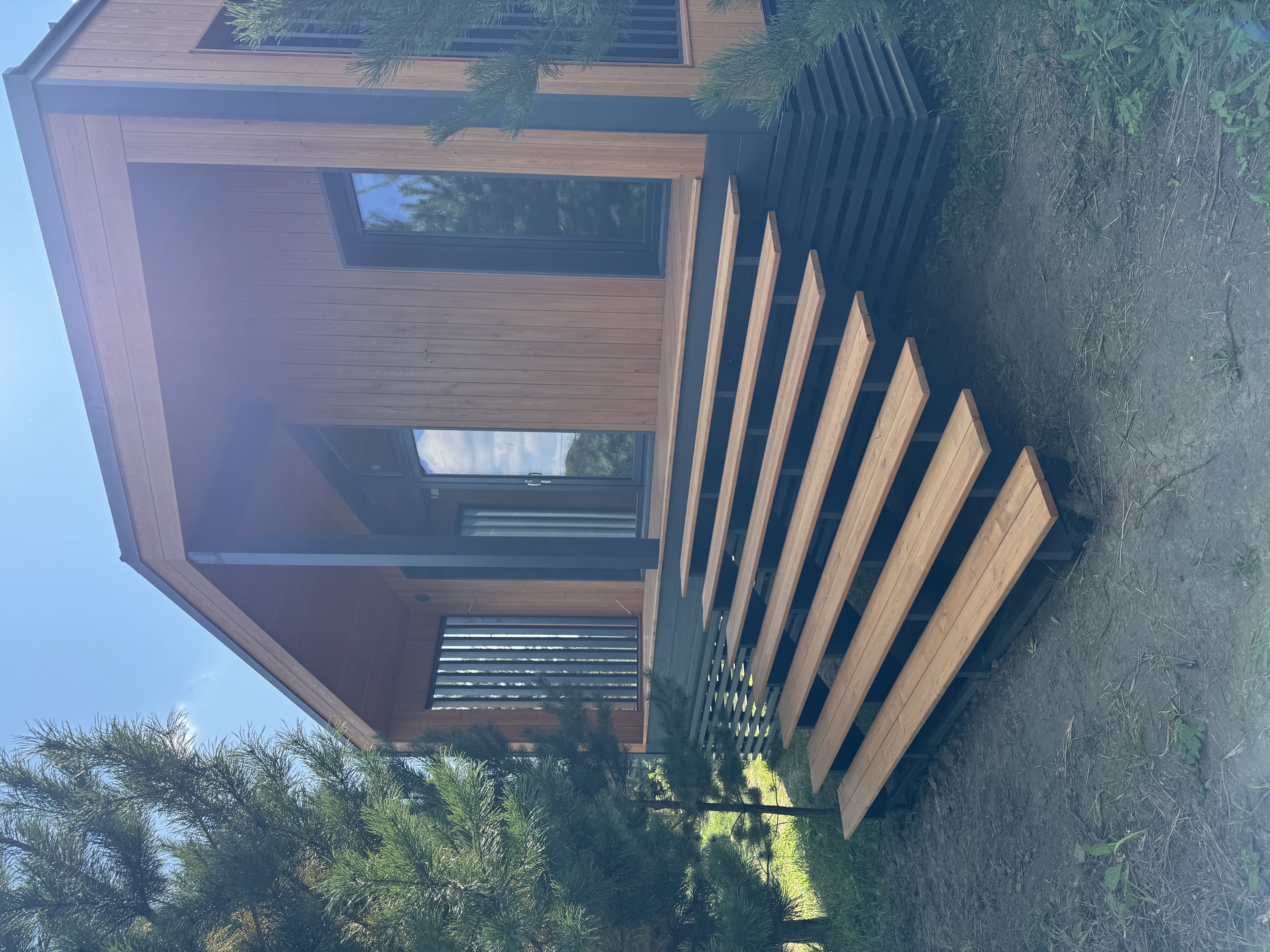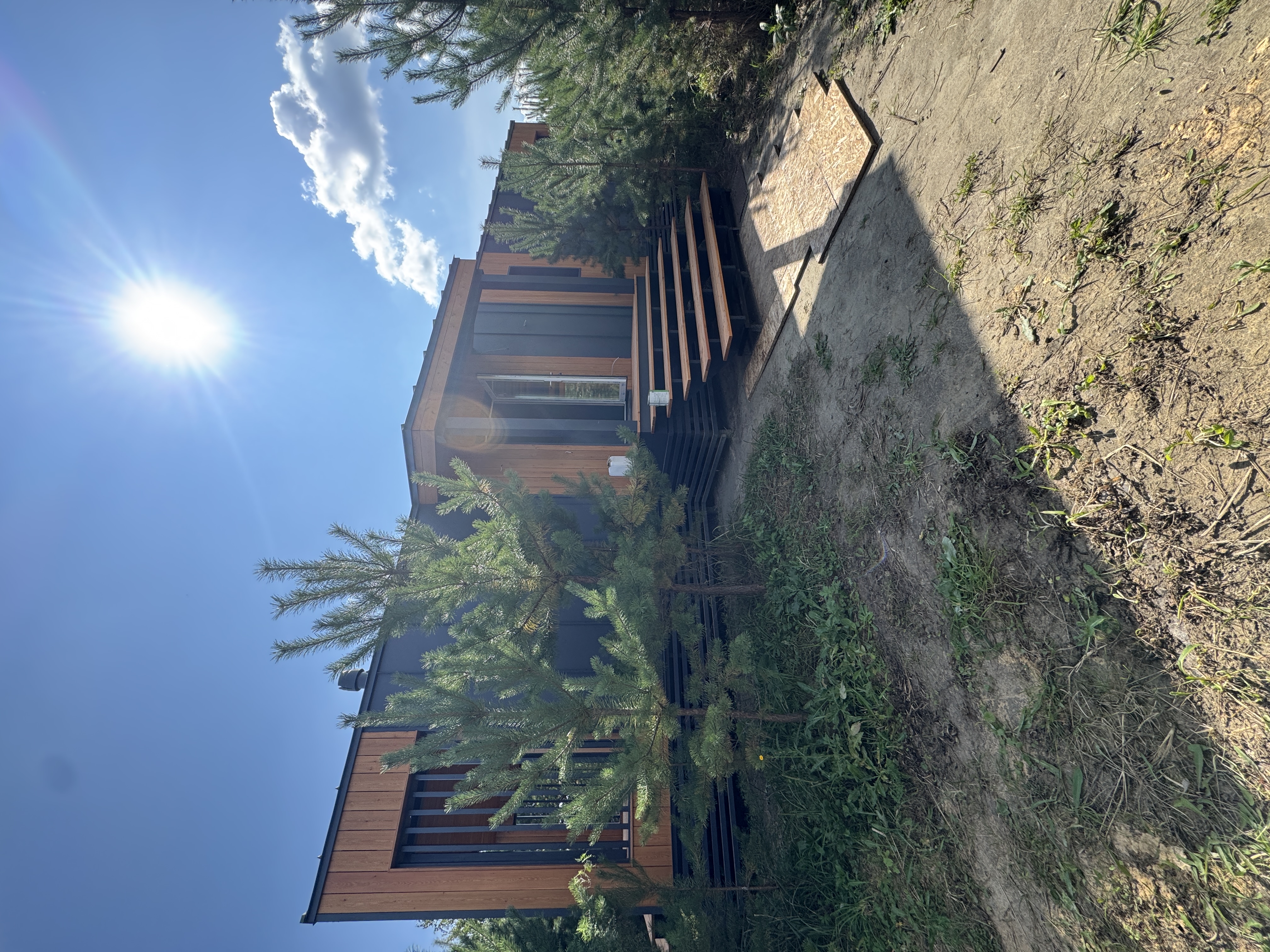 Каркасный дом по нашему типовому проекту находящийся в СНТ "Элеваторщик". Фундамент винтовые сваи. Толщина теплоизоляции стен 200 мм , кровли 300 мм , фасад комбинированный из кликфальца и дерева, кровля фальцевая, внутренняя отделка ГКЛ.