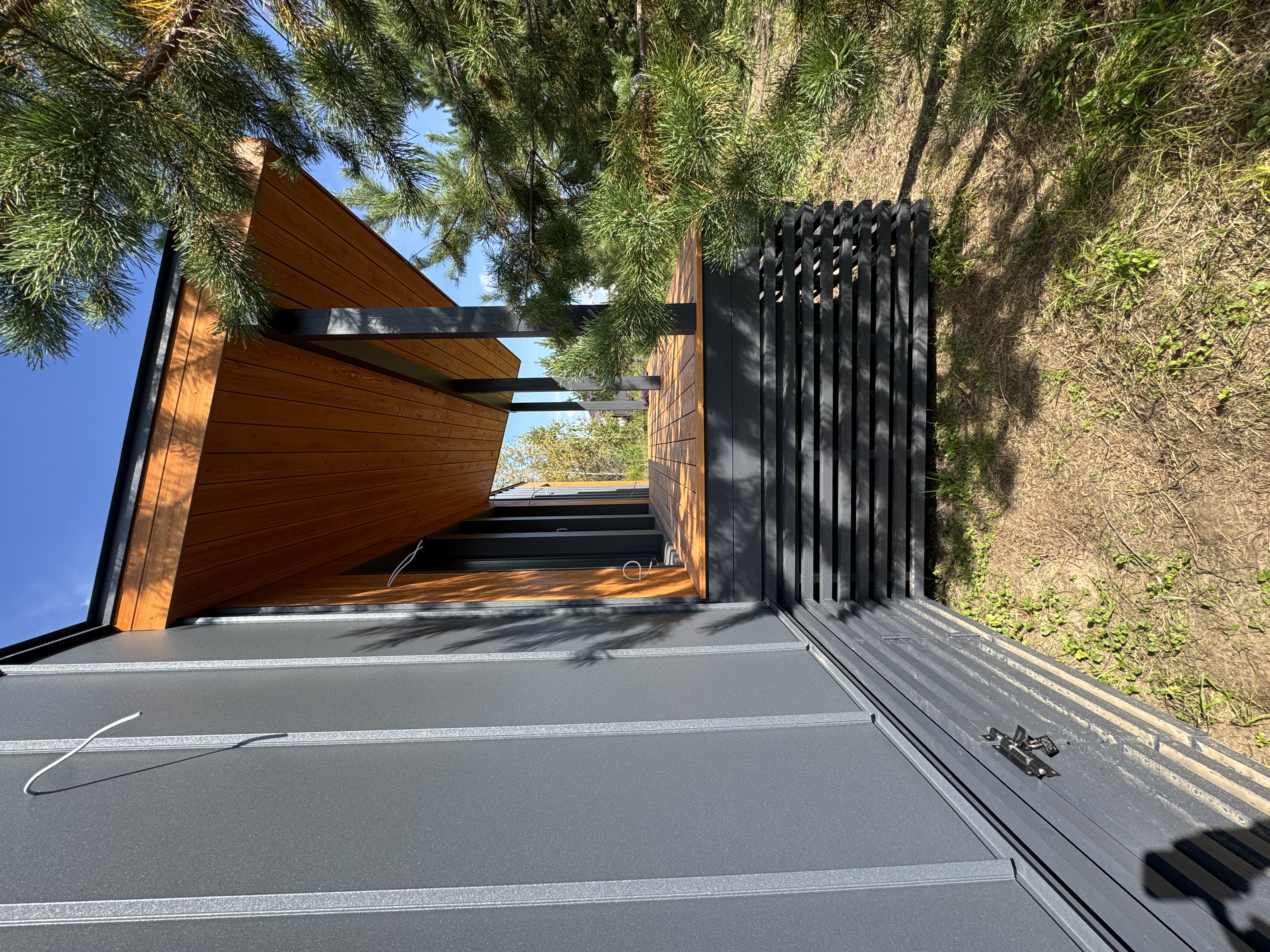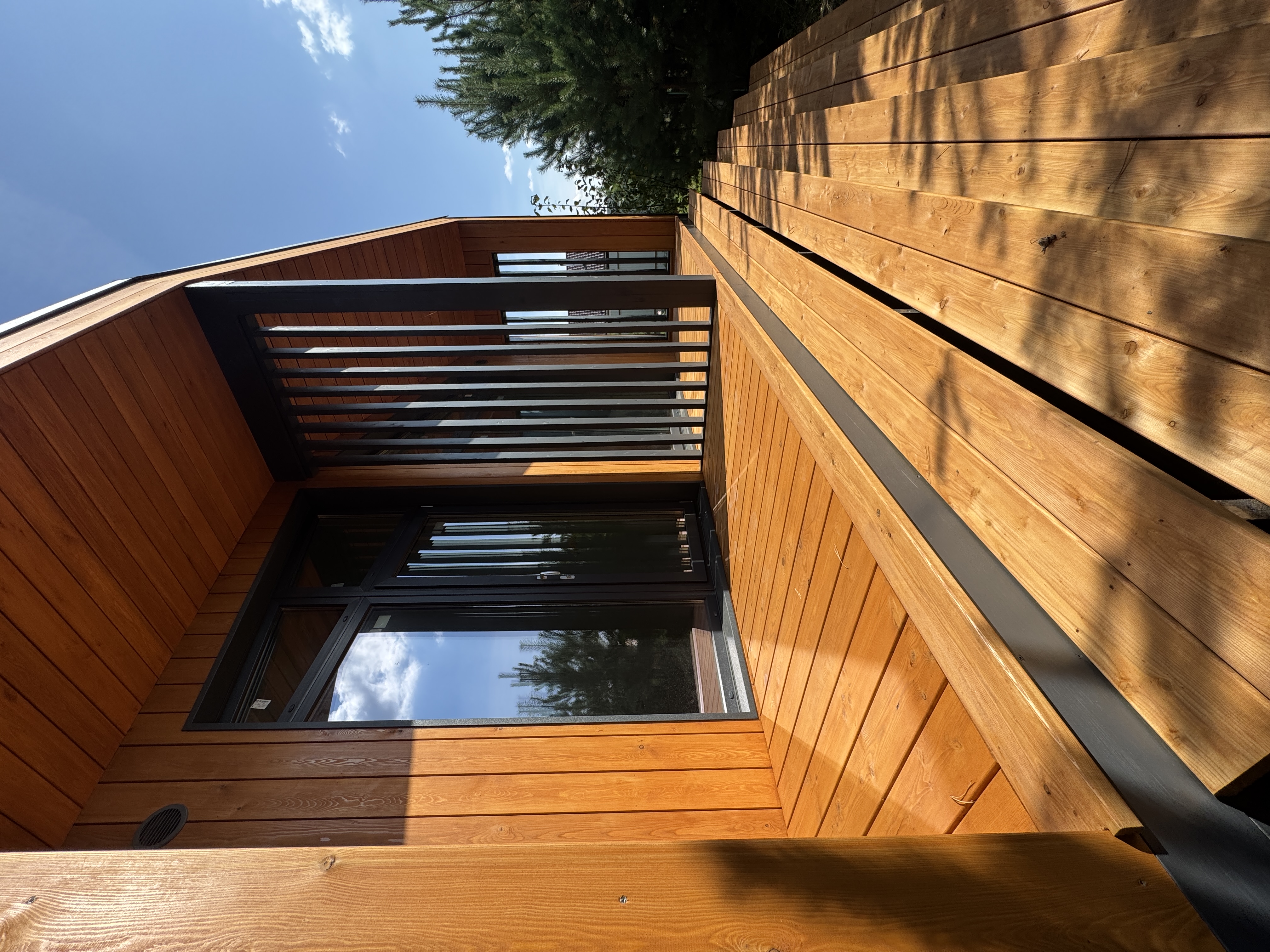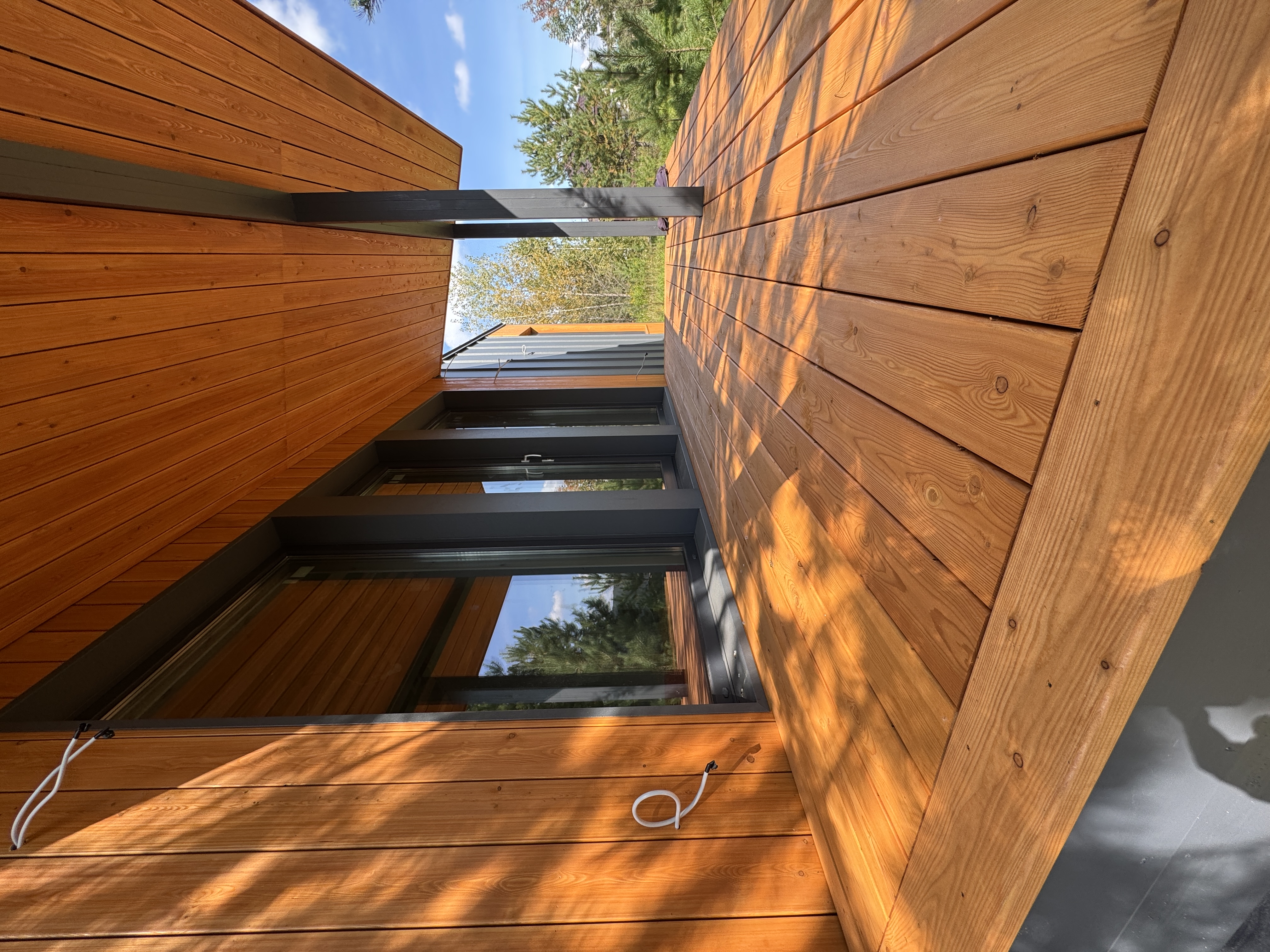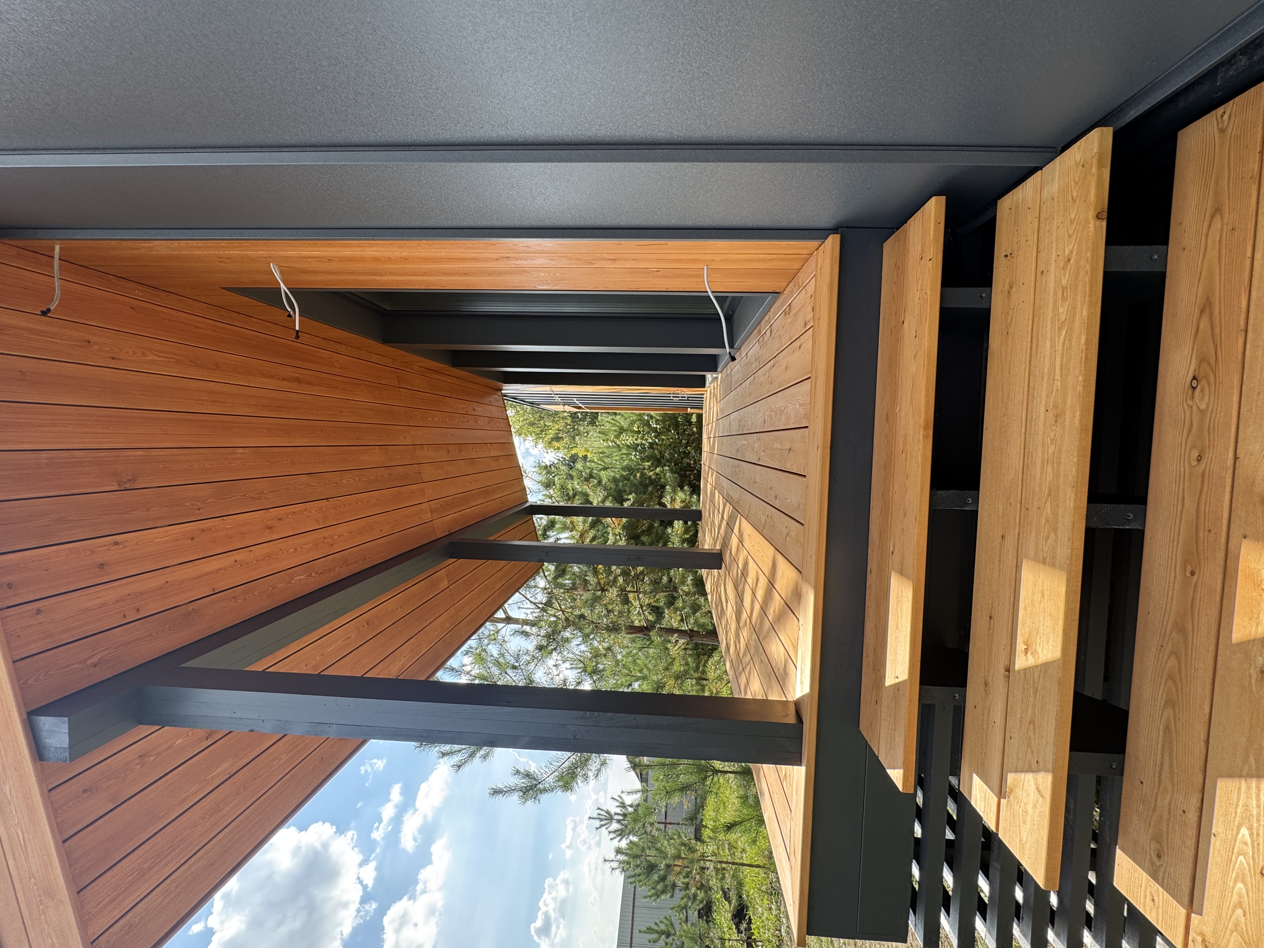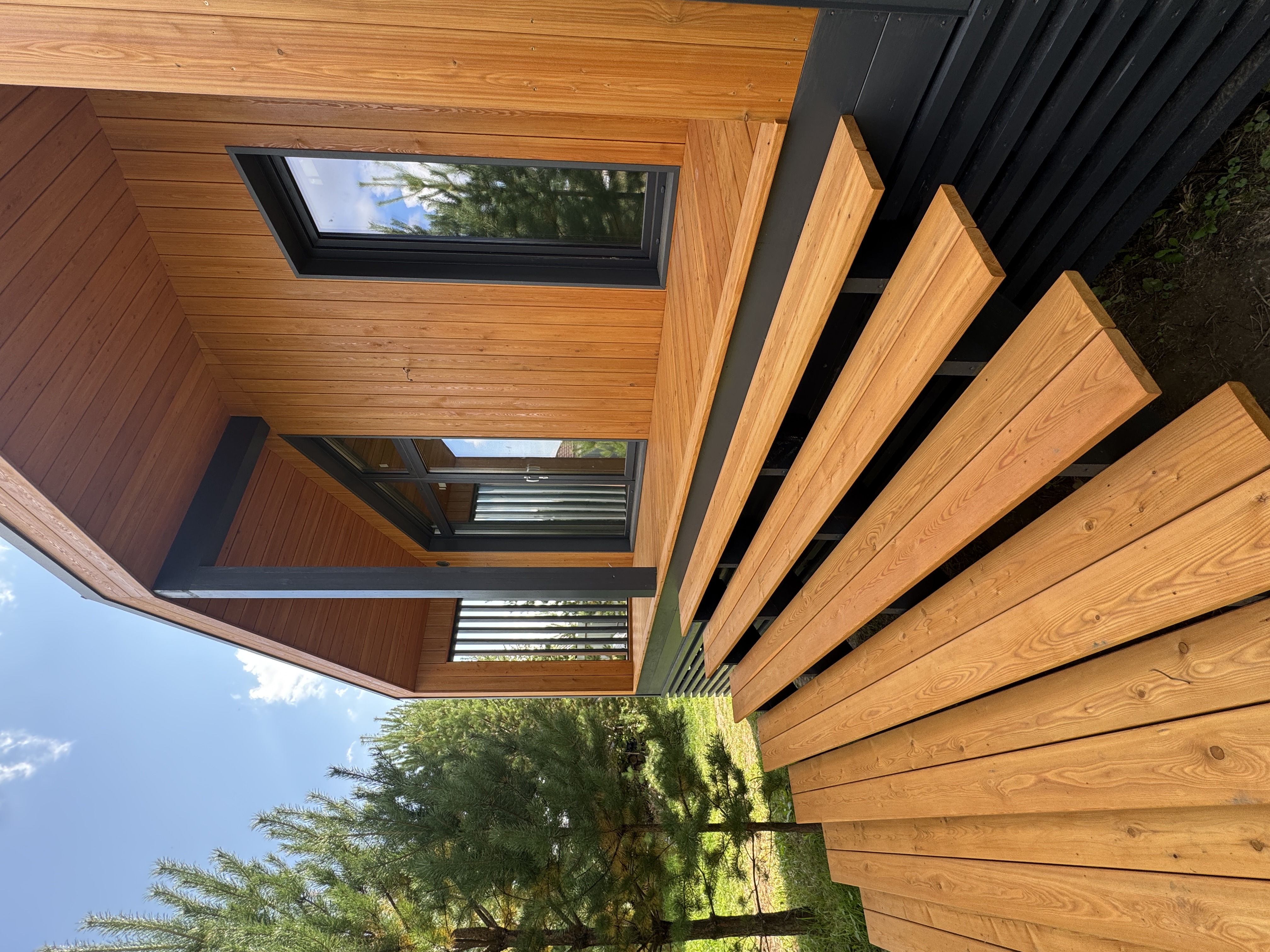 Каркасный дом по нашему типовому проекту находящийся в СНТ "Элеваторщик". Фундамент винтовые сваи. Толщина теплоизоляции стен 200 мм , кровли 300 мм , фасад комбинированный из кликфальца и дерева, кровля фальцевая, внутренняя отделка ГКЛ.