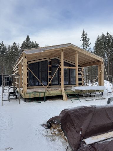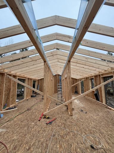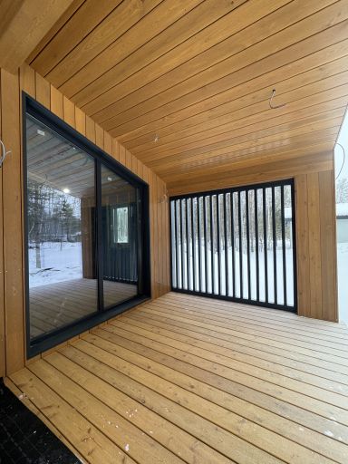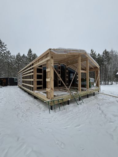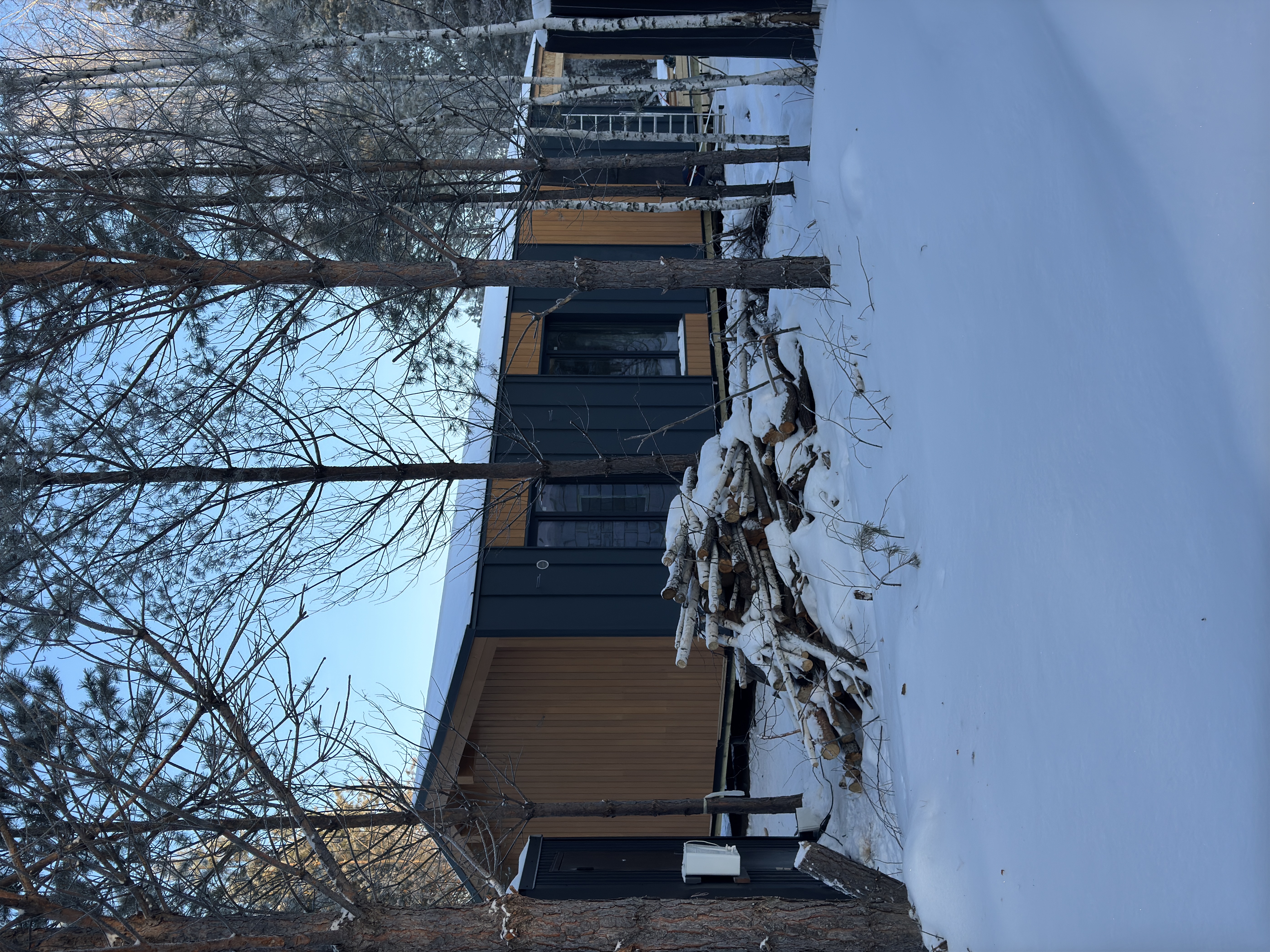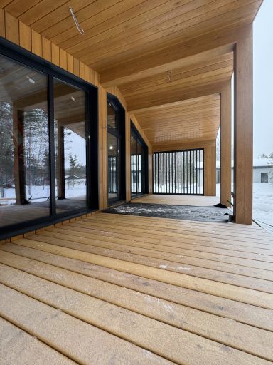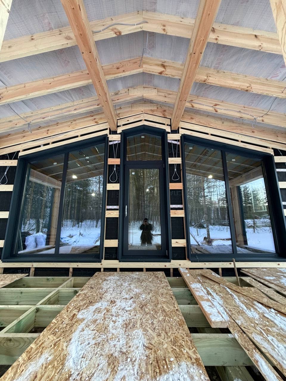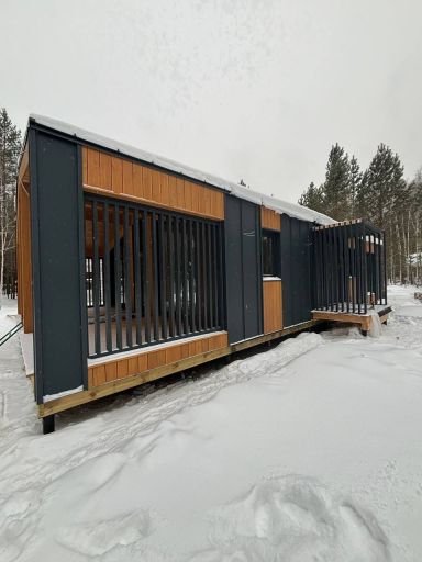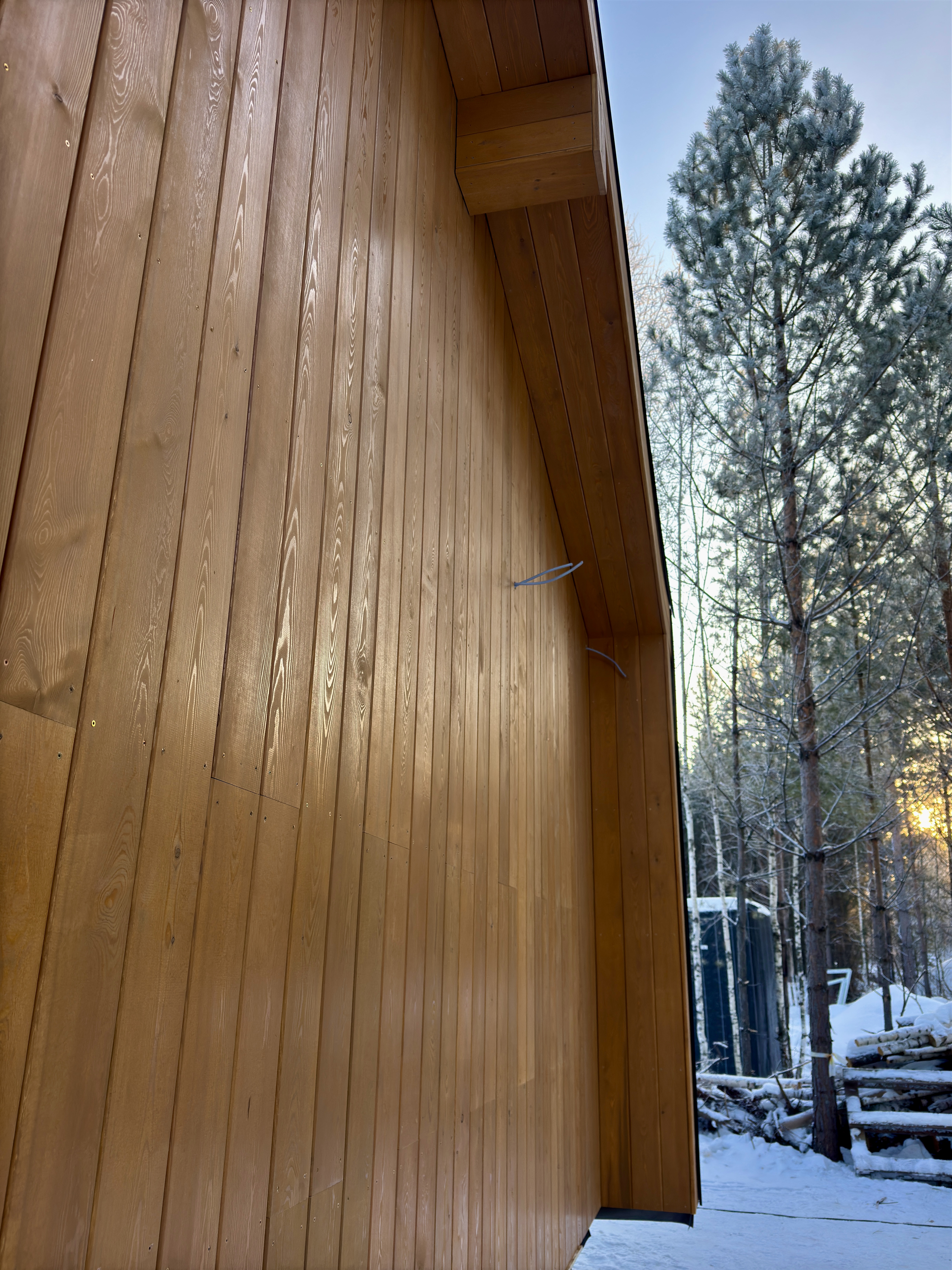 Каркасный дом по нашему типовому проекту находящийся в п. Степной, мрн. Калиновый. Фундамент винтовые сваи. Толщина теплоизоляции стен 200 мм , кровли 300 мм , фасад комбинированный из кликфальца и дерева, кровля фальцовая, внутренняя отделка ГКЛ/вагонка штиль.