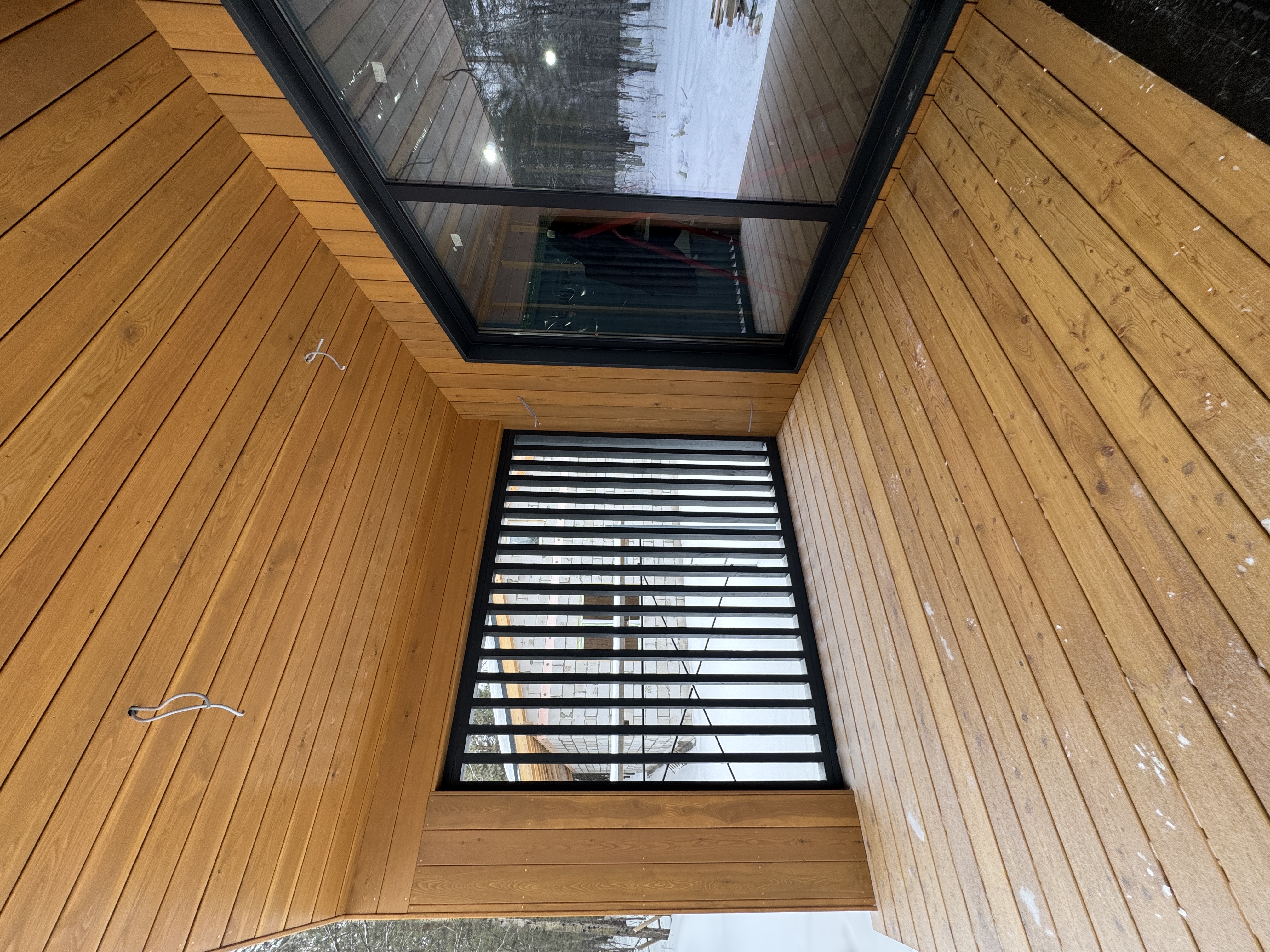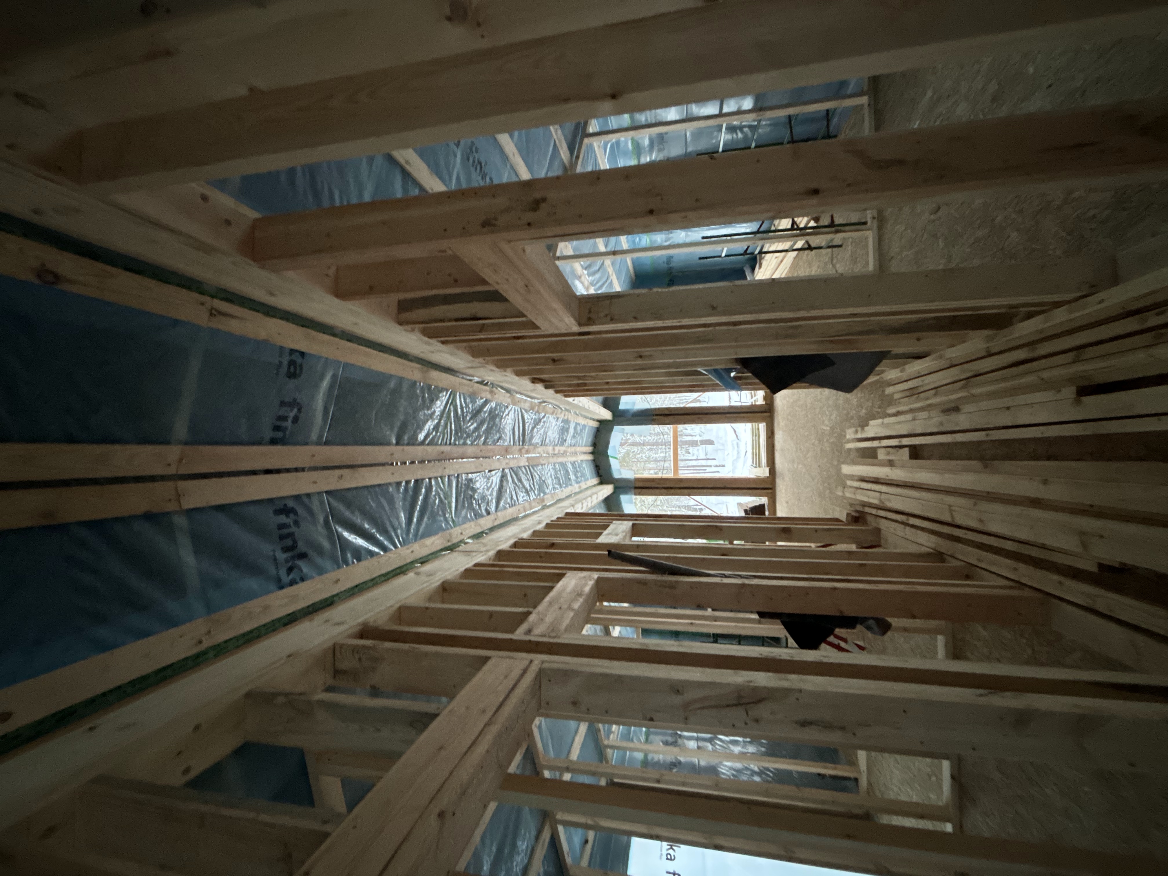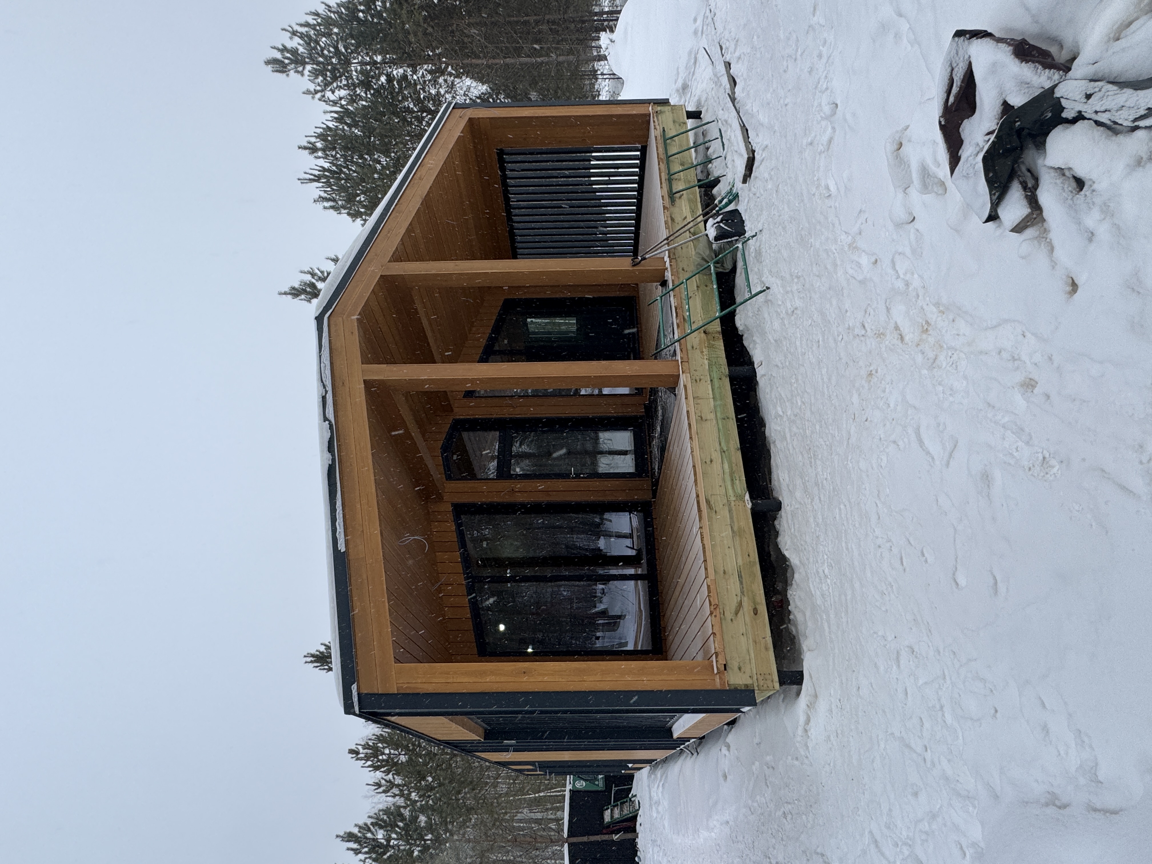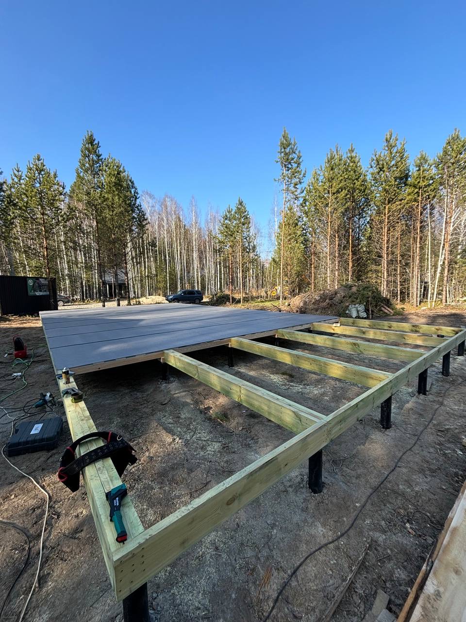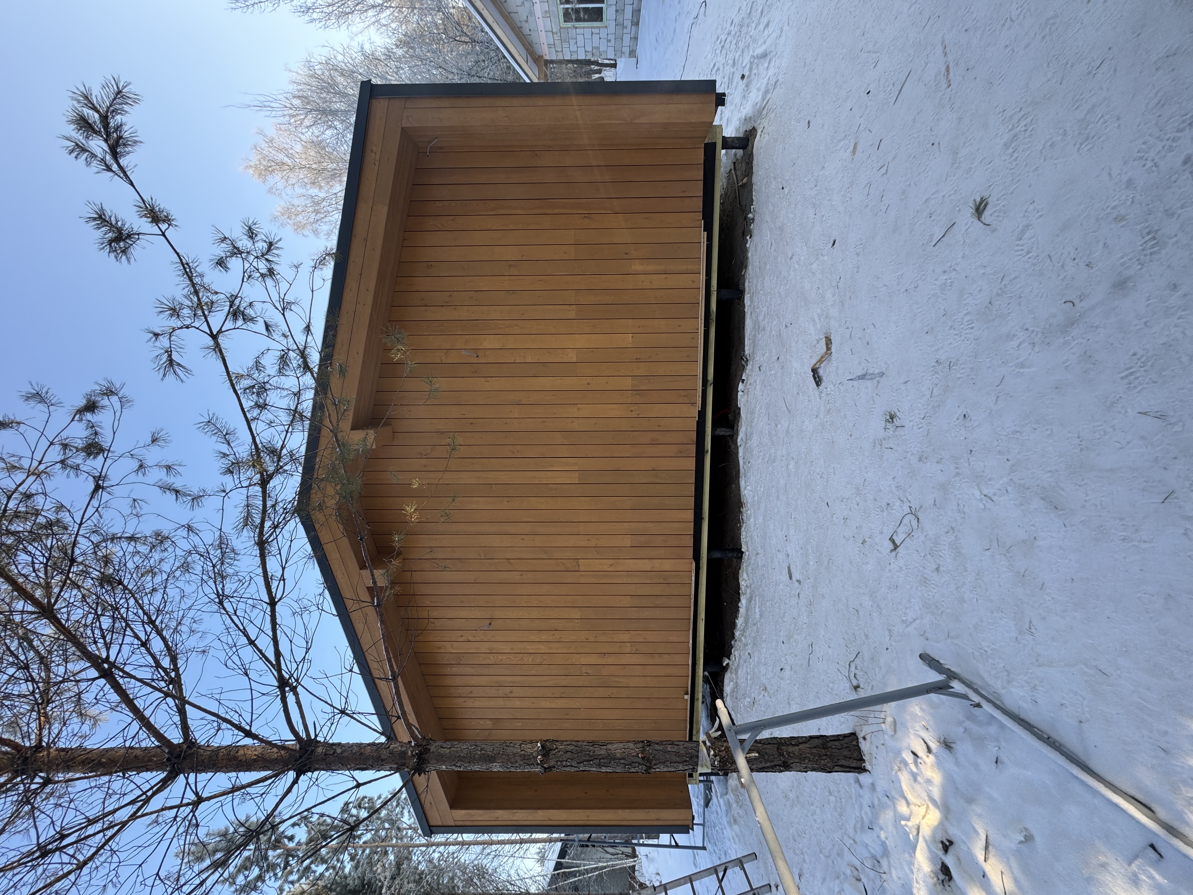 Каркасный дом по нашему типовому проекту находящийся в п. Степной, мрн. Калиновый. Фундамент винтовые сваи. Толщина теплоизоляции стен 200 мм , кровли 300 мм , фасад комбинированный из кликфальца и дерева, кровля фальцовая, внутренняя отделка ГКЛ/вагонка штиль.