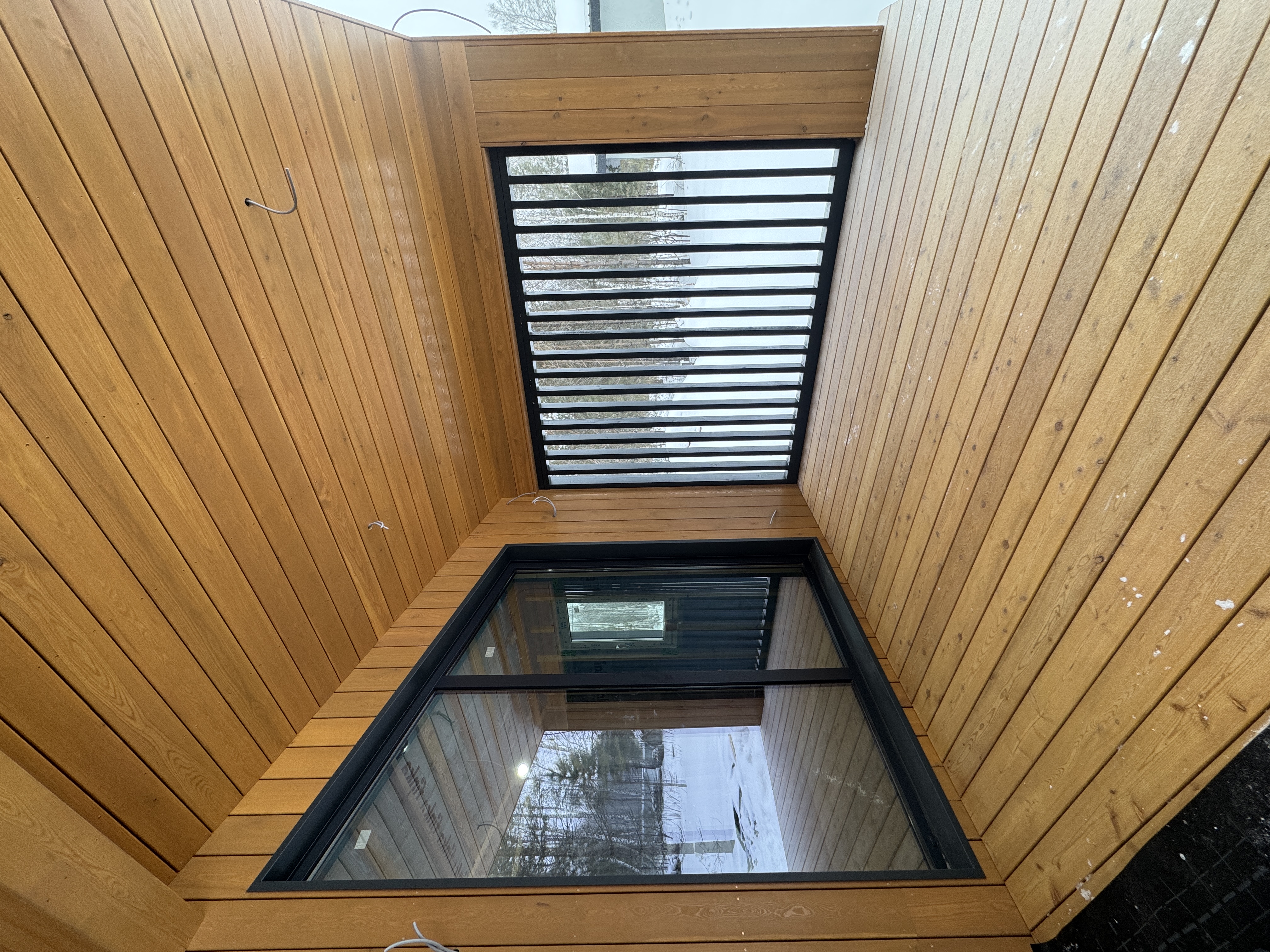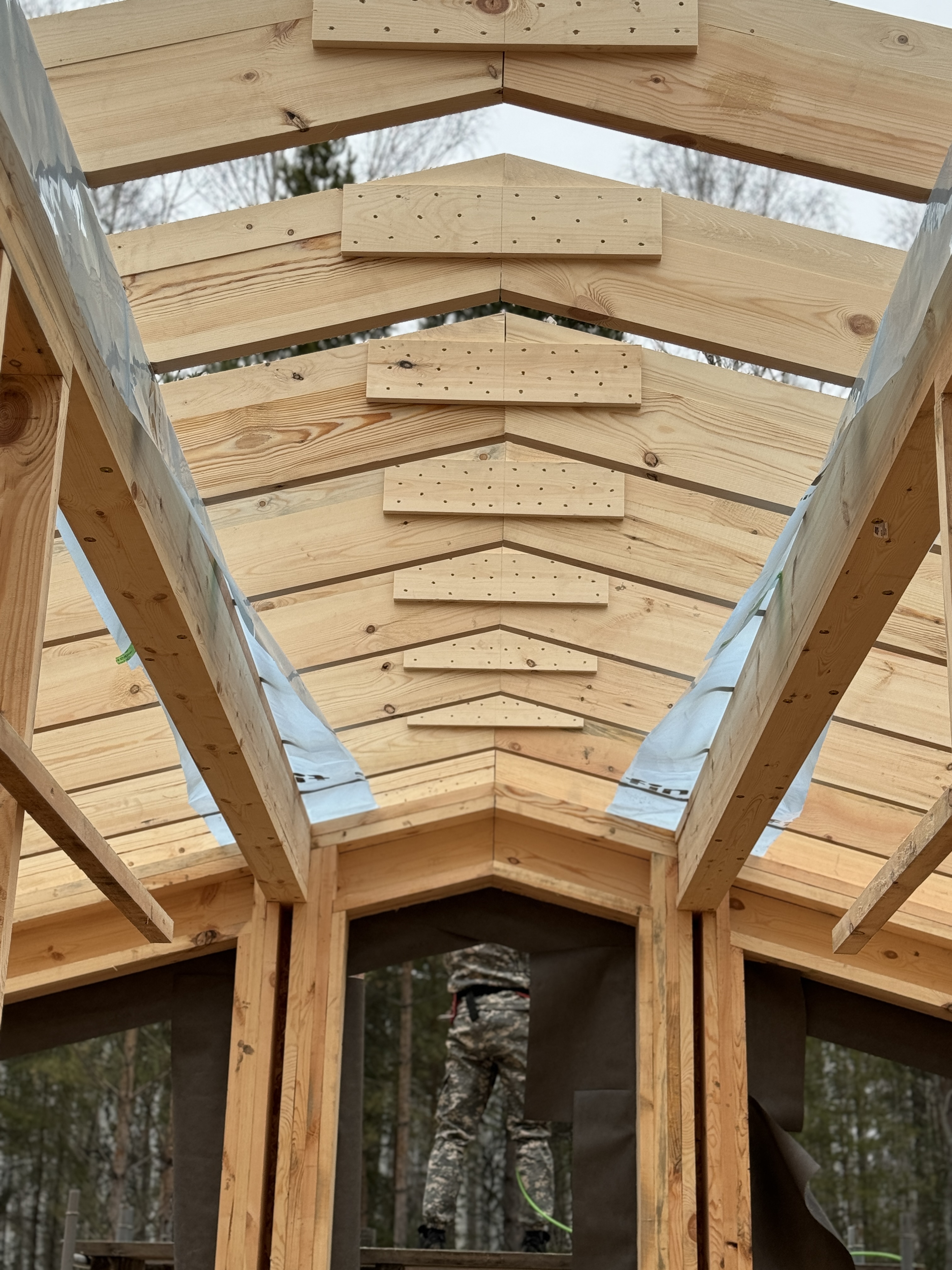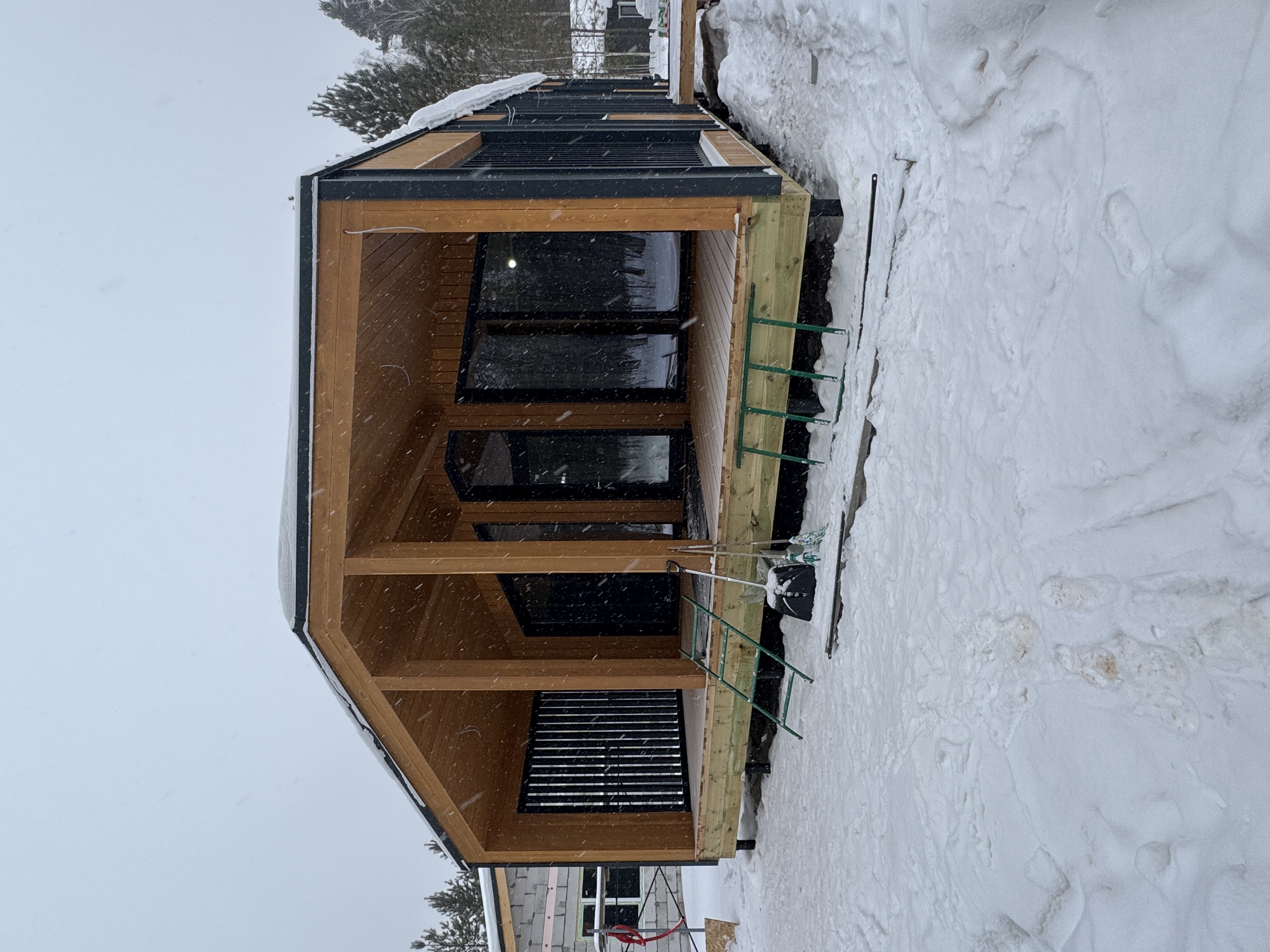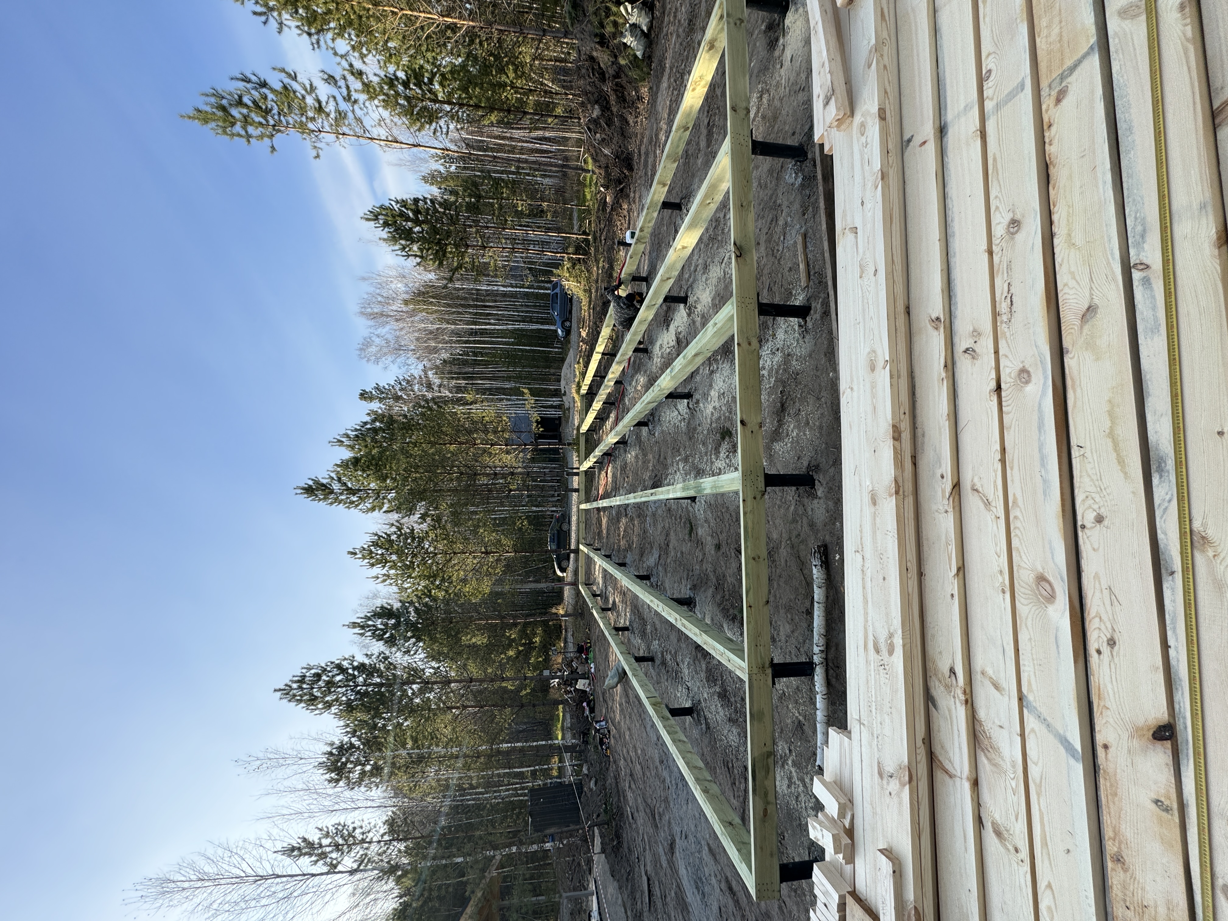 Каркасный дом по нашему типовому проекту находящийся в п. Степной, мрн. Калиновый. Фундамент винтовые сваи. Толщина теплоизоляции стен 200 мм , кровли 300 мм , фасад комбинированный из кликфальца и дерева, кровля фальцовая, внутренняя отделка ГКЛ/вагонка штиль.