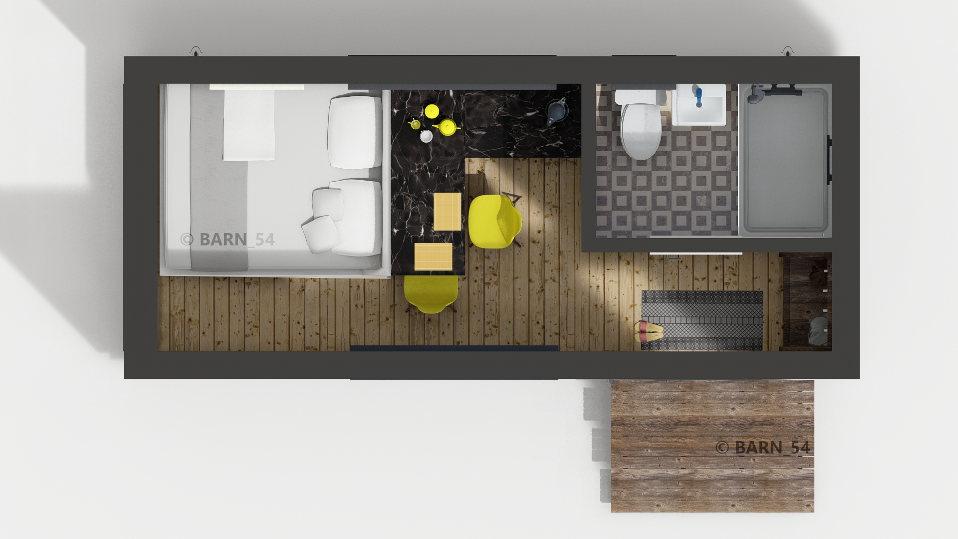 → Внутренняя отделка: стены вагонка "штиль" сорта АБ с покраской (цвет на выбор), полы черновые — OSB-3 в сухих помещениях, санузлах и влажных помещениях ЦСП, финишные полы (сан. узел): керамогранит, (комната, коридор): ламинат, дверь межкомнатная, освещение.