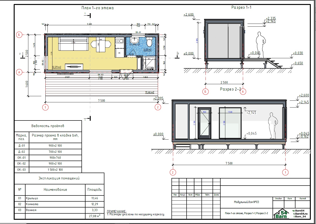 → Внутренняя отделка: стены вагонка "штиль" сорта АБ с покраской (цвет на выбор), полы черновые — OSB-3 в сухих помещениях, санузлах и влажных помещениях ЦСП
