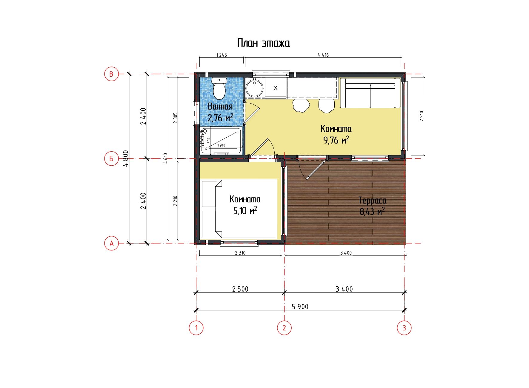 Модульный дом MD"30 (5,9x4,8м) с террасой