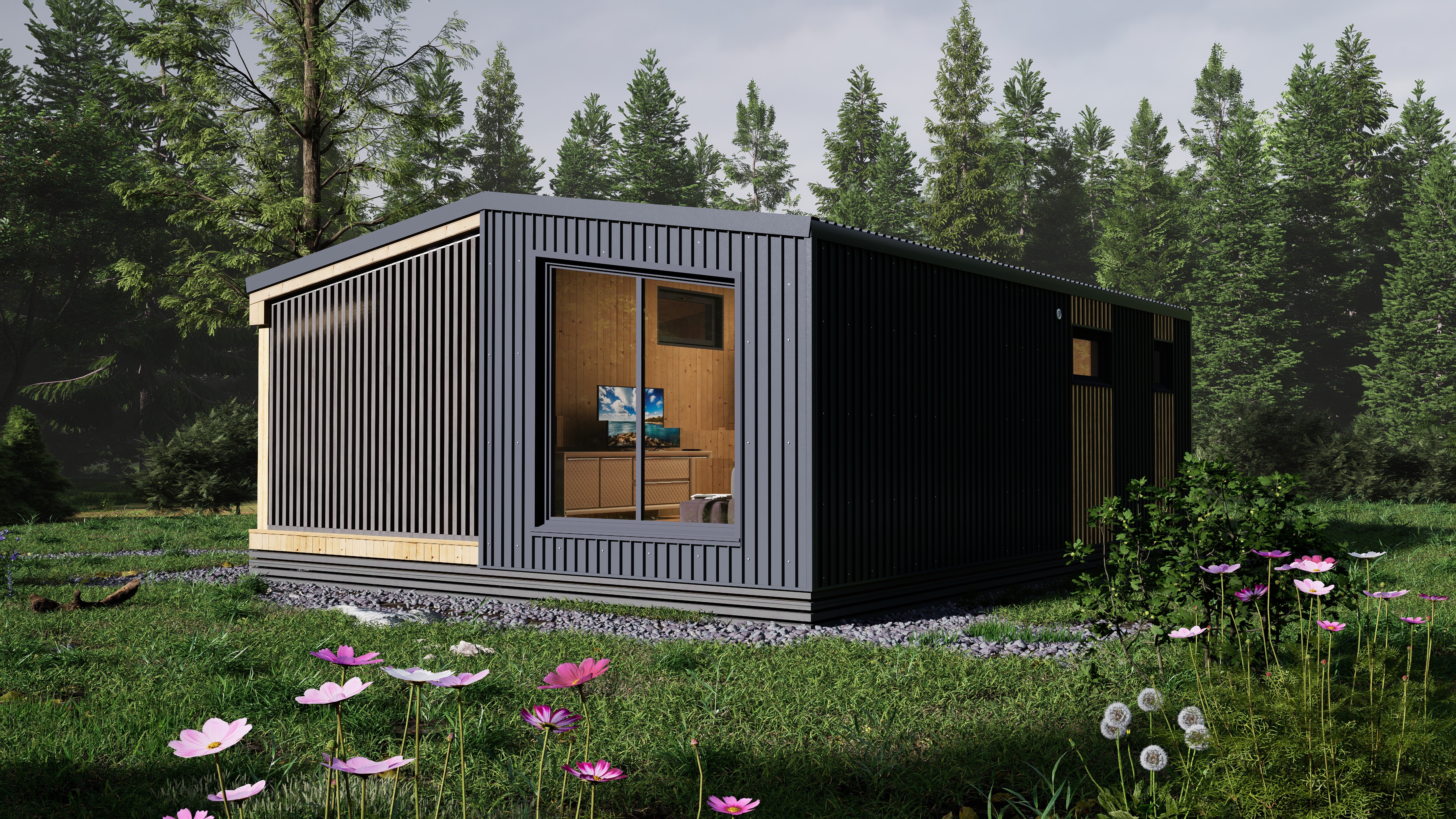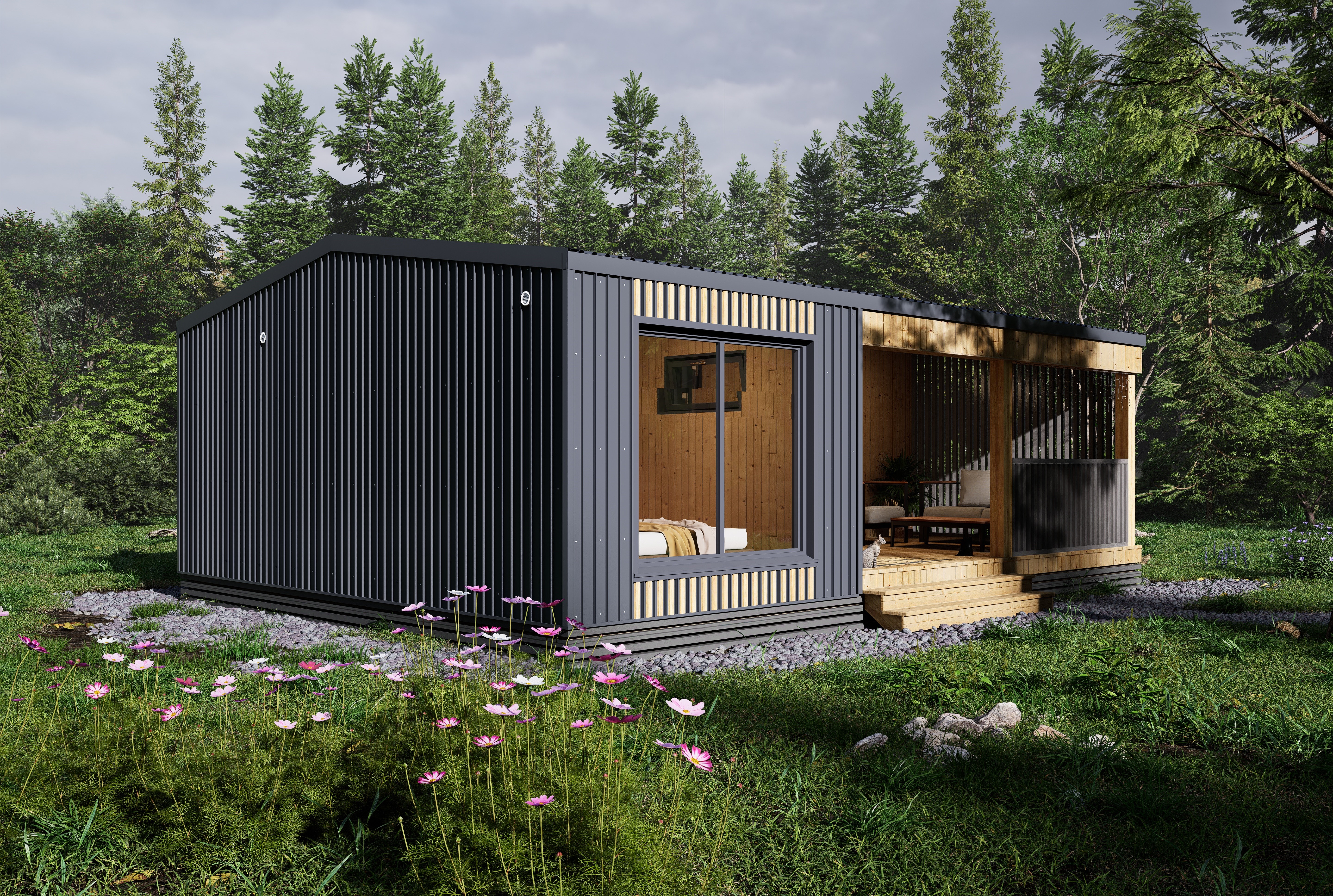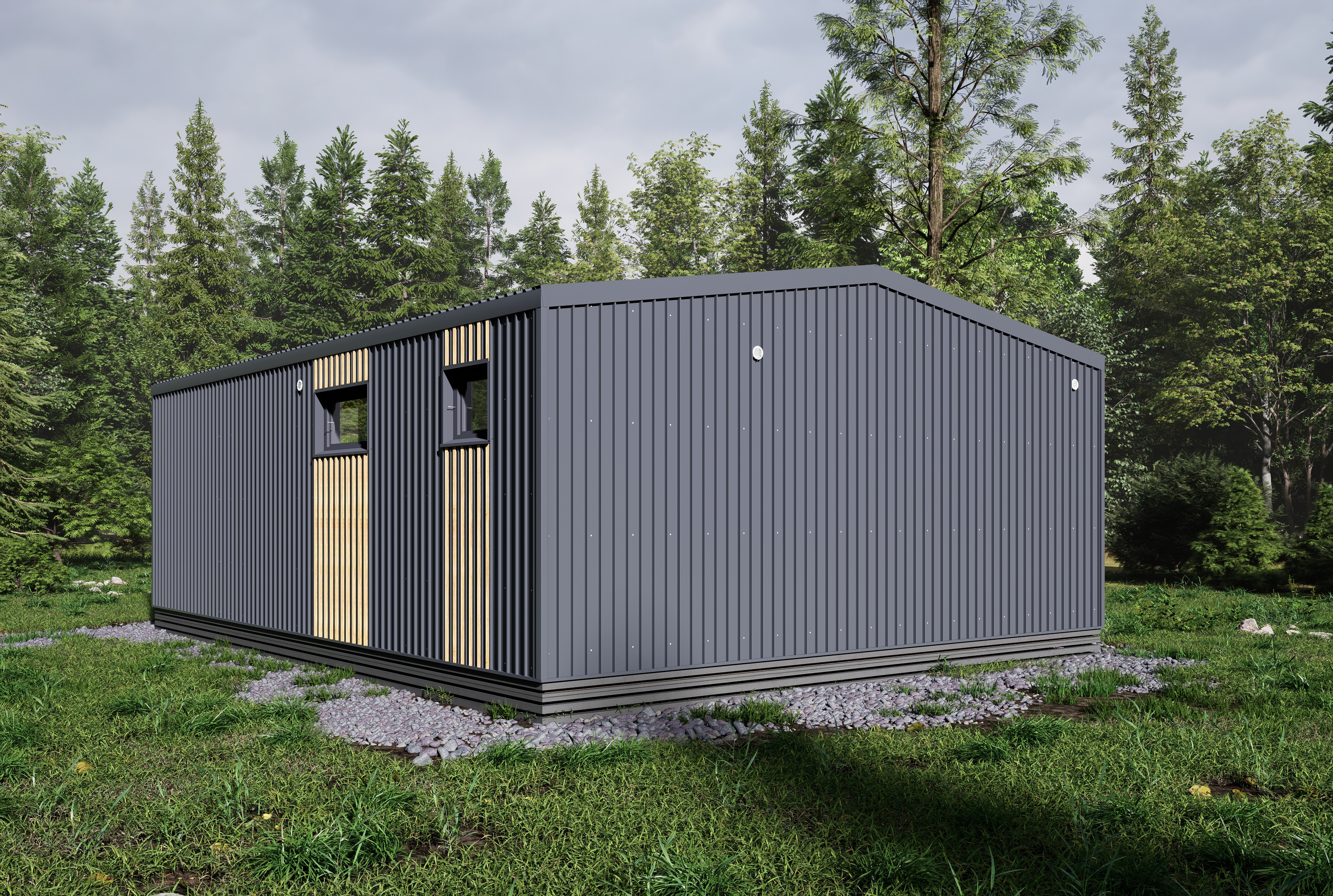 → Фасад и кровля: оконные отливы и откосы из металла 0,5 мм, планкен прямой сорт АБ с покраской (цвет на выбор), кровельный и фасадный материал кликфальц 0,5 мм.