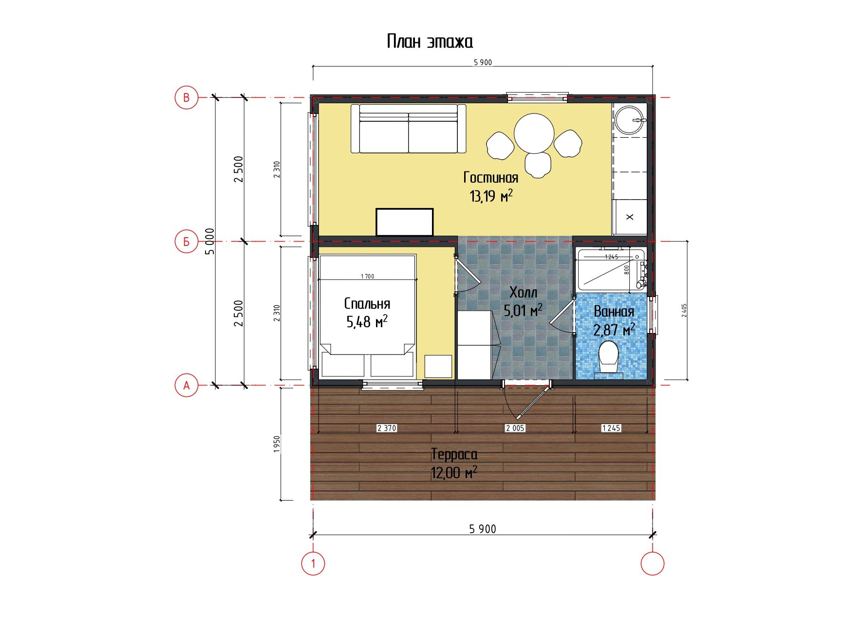 Модульный дом MD"42 (6,9x5,9м) с террасой